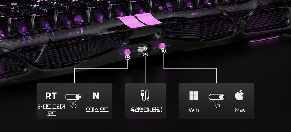 래피드 트리거 모드는 키의 ‘끈적임(stiction)’ 현상을 제거해, 키가 올라오는 즉시 즉각 리셋되어 재입력과 입력 전환이 그 어느 때보다 빠릅니다. 키가 ‘튕겨 올라오길 기다릴’ 필요 없이, 빠른 콤보, 스킬 샷, 방향 전환을 지연 없이 매끄럽게 실행할 수 있습니다.
