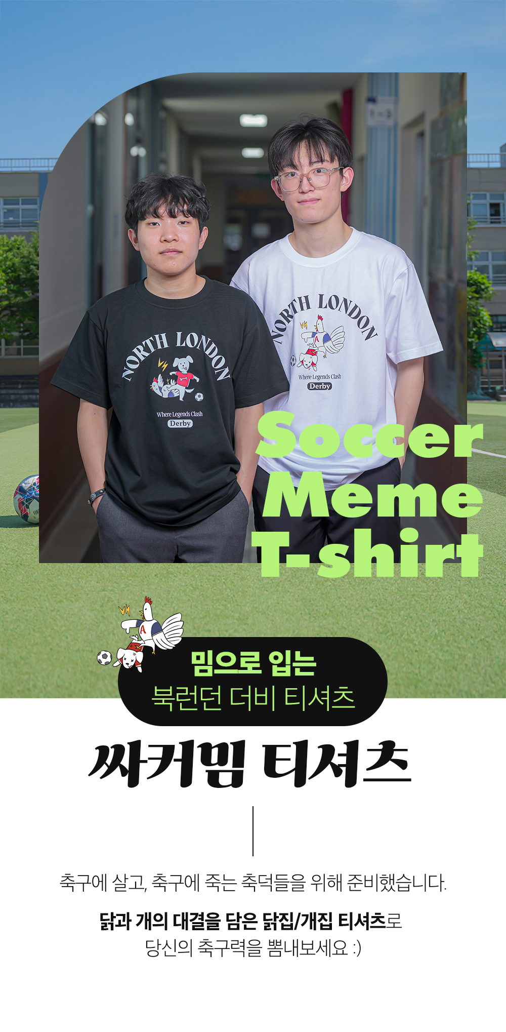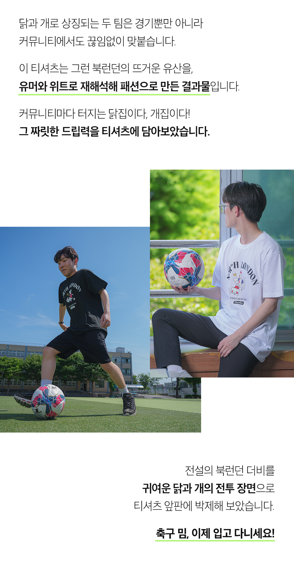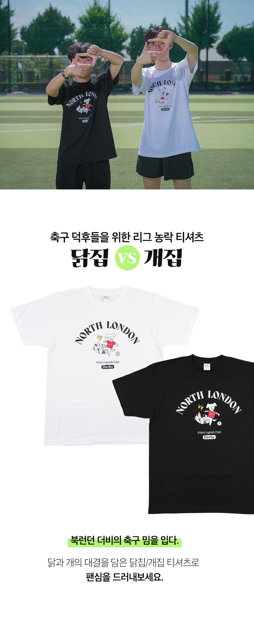 축구에 살고, 축구에 죽는 축덕들을 위해 준비했습니다. 닭과 개의 대결을 담은 닭집/개집 티셔츠로 당신의 축구력을 뽐내보세요 :) [2025 아산시 청소년 스타트업 프로그램]