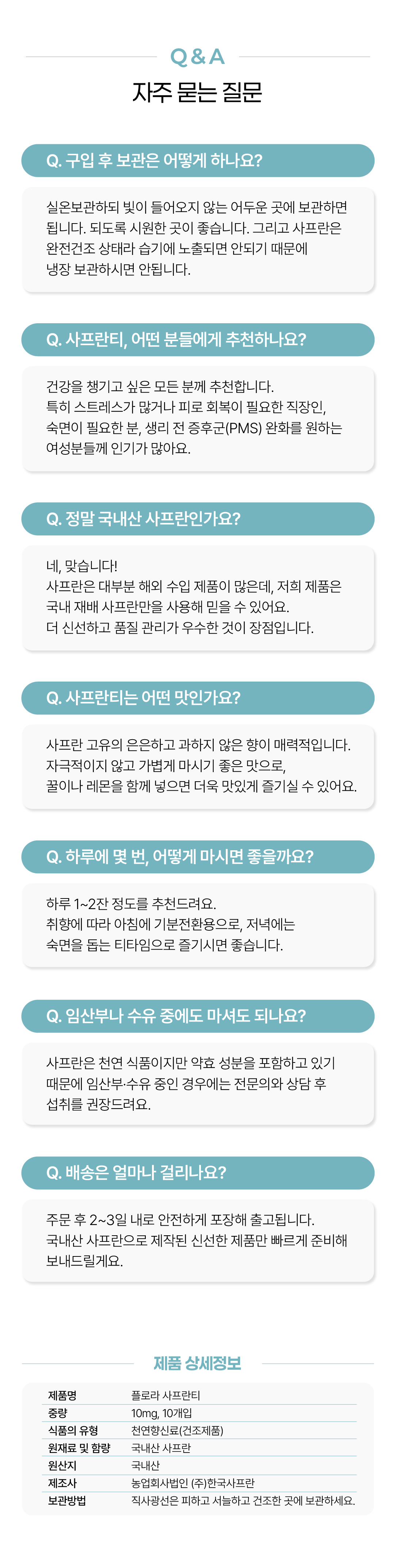 국산 사프란의 신선함과 안전성, 섬세한 품질은 직접 경험해보시면 분명히 차이를 느끼실 수 있습니다.
