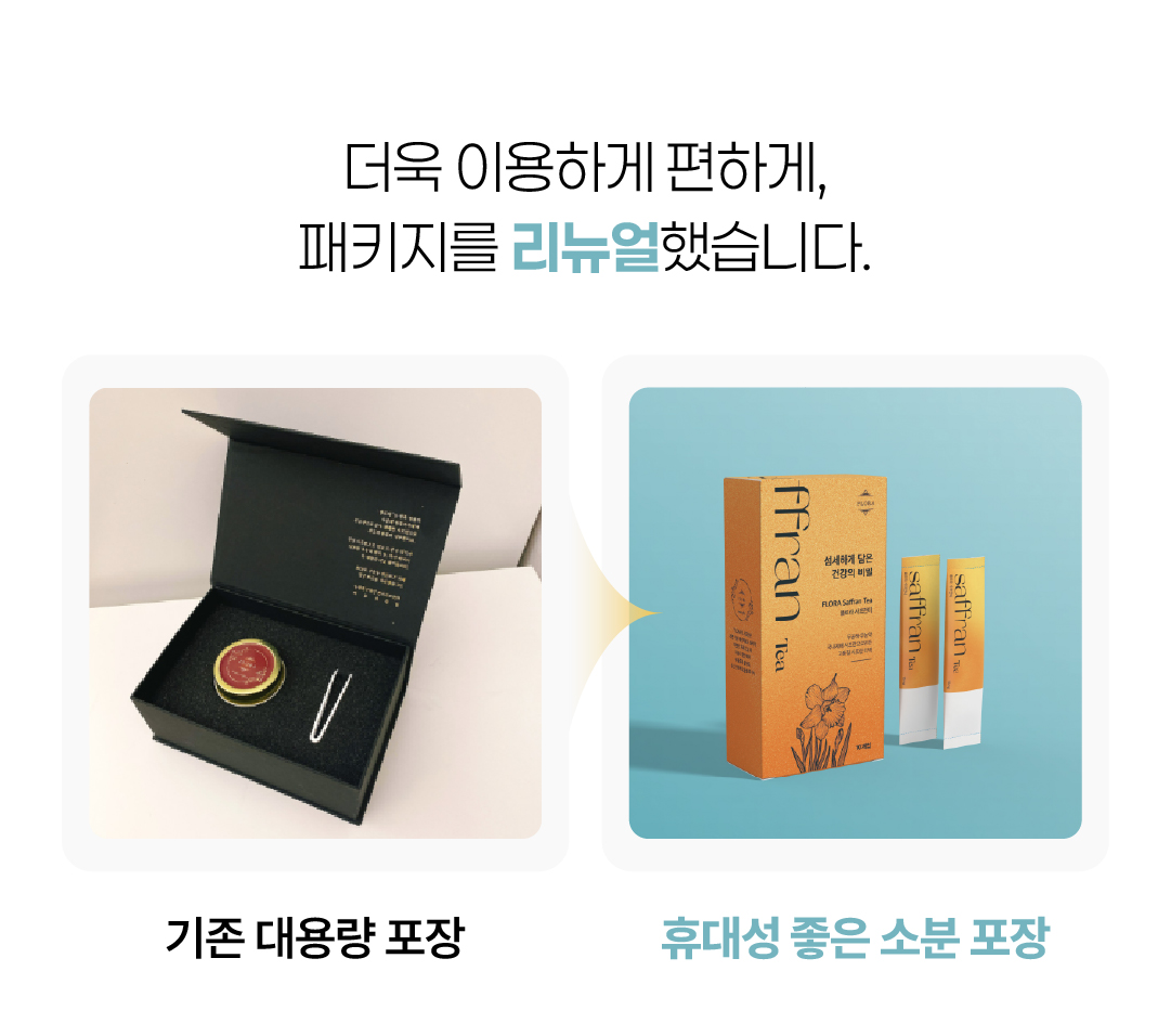 기존에 벌크형 포장이던 형태에서 휴대성이 좋은 소분형으로 변경하였습니다.