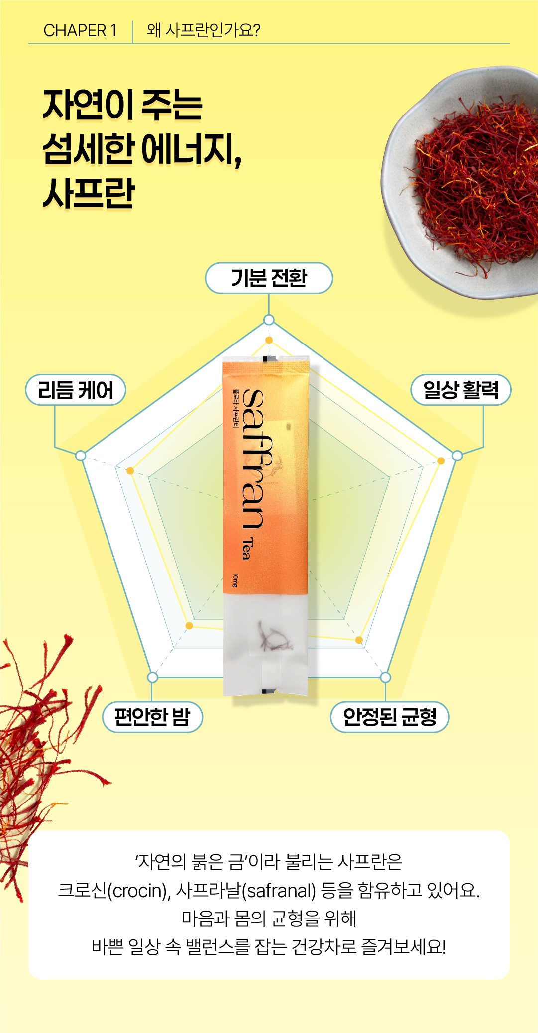 오늘의 리듬을 부드럽게, 사프란으로 채우는 여유로 기분 전환과 일상의 활력을 채우세요.