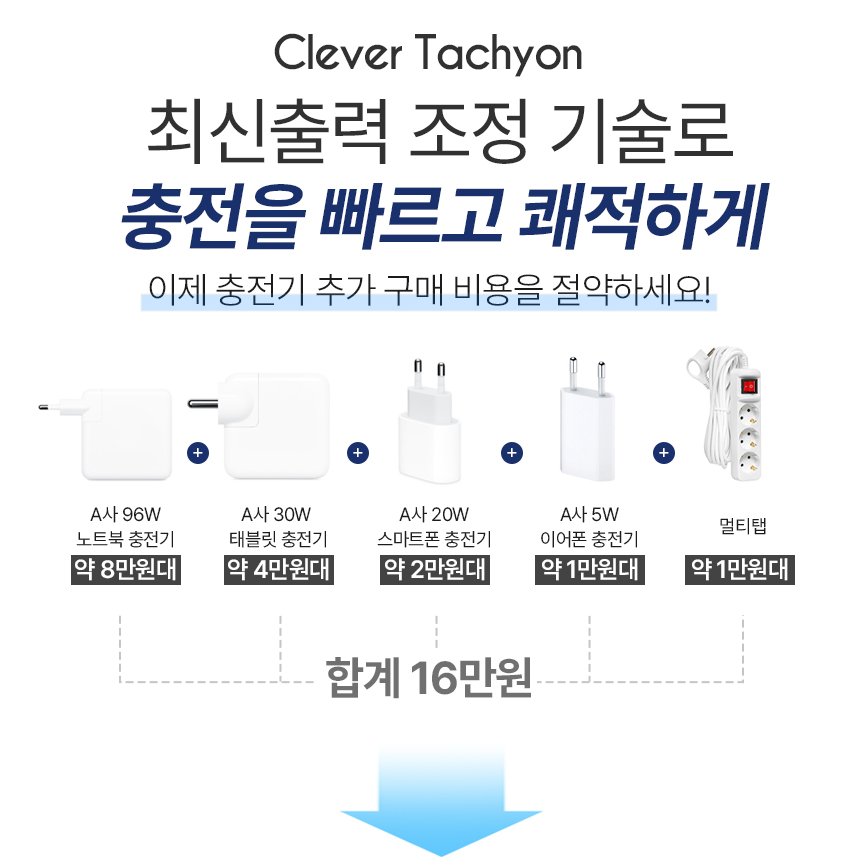 또 기기마다 고출력이 충전이 필요한 기기와 저전력 충전이 필요한 기기등 기기마다 충전 전력이 다르므로 또 별도의 충전기를 구입하셨을겁니다. 클레버 타키온 CR210은 출력 조절이 가능한 최신 기술로, 향후 충전기 추가 구매에 대한 이중 지출을 줄일 수 있습니다.