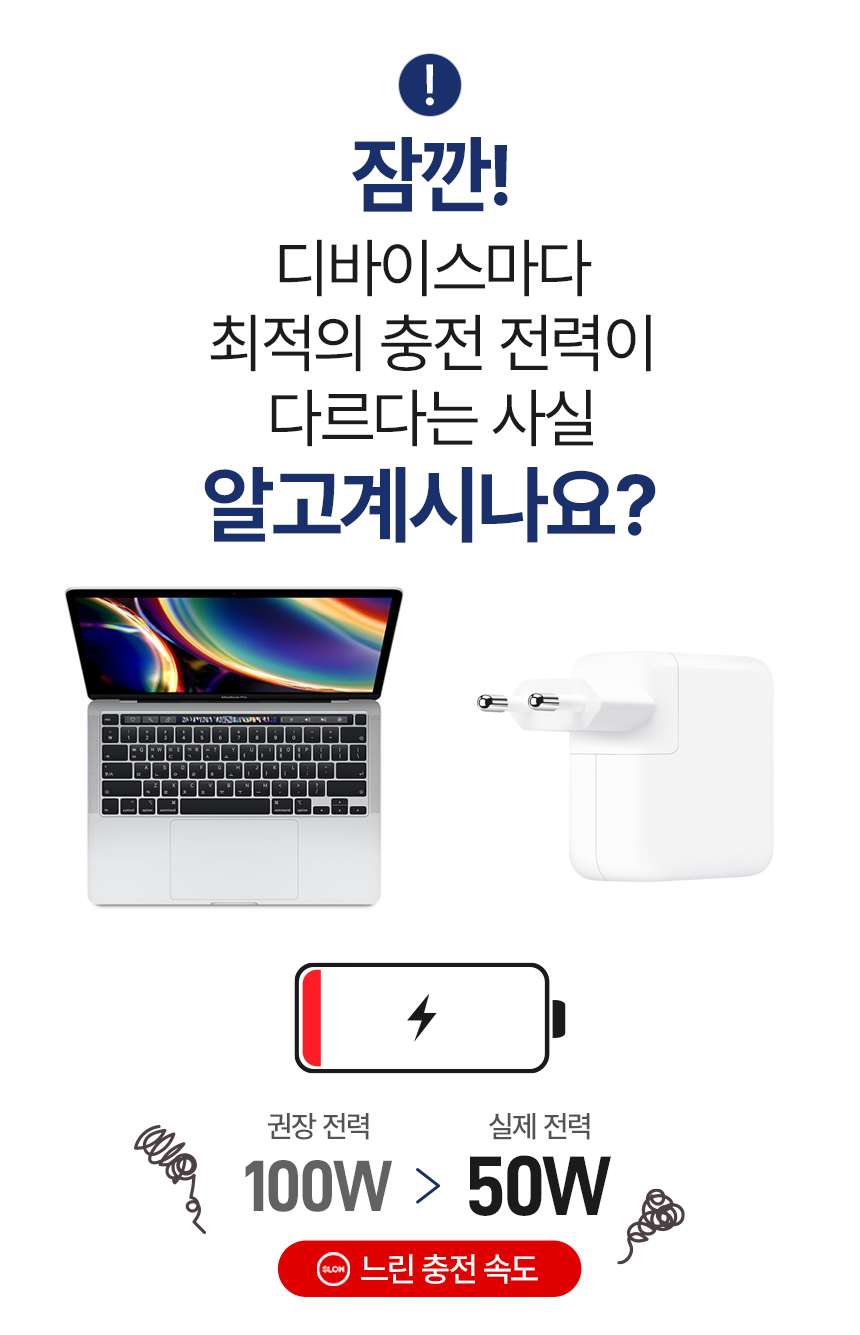 노트북, 스마트폰, 스마트워치 등 수백만원을 호가하는 스마트 디바이스들. 성능이 검증되지 못한 저가의 충전기를 사용하여 충전을 하다가는 디바이스가 손상 될 수 있습니다. 고성능의 디바이스에는 그에 맞는 검증된 고성능 충전기를 사용해야 합니다