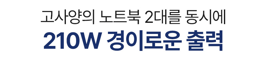 210W의 엄청난 출력으로 고사양 노트북 2대를 동시에 충전하더라도 전혀 부족함 없는 넉넉함을 자랑합니다.