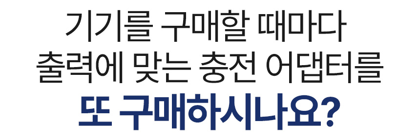 디바이스 별로 지원하는 충전 전력은 모두 다릅니다. 만약 이와 맞지 않는 출력의 충전기로 연결하면 매우 느리게 충전되어 디바이스 사용 및 이동시 많은 불편함이 발생됩니다.