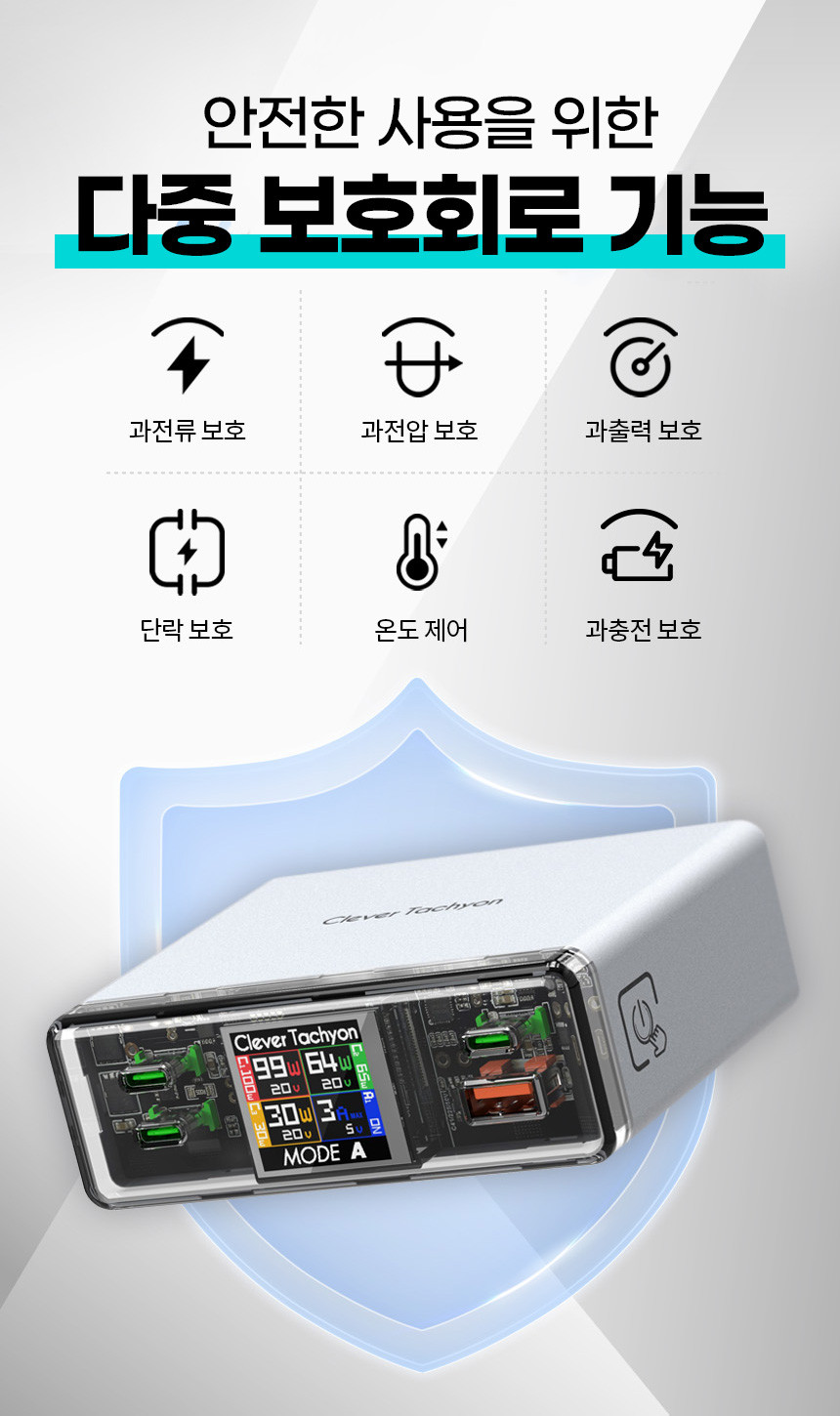 충전기의 기본은 안전입니다. 클레버 충전기는 다양한 보호 기능을 탑재하여 디바이스의 안전을 책임집니다.