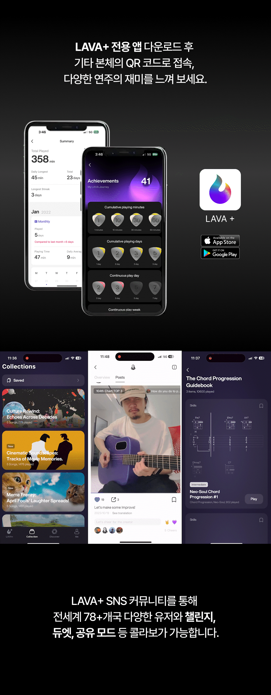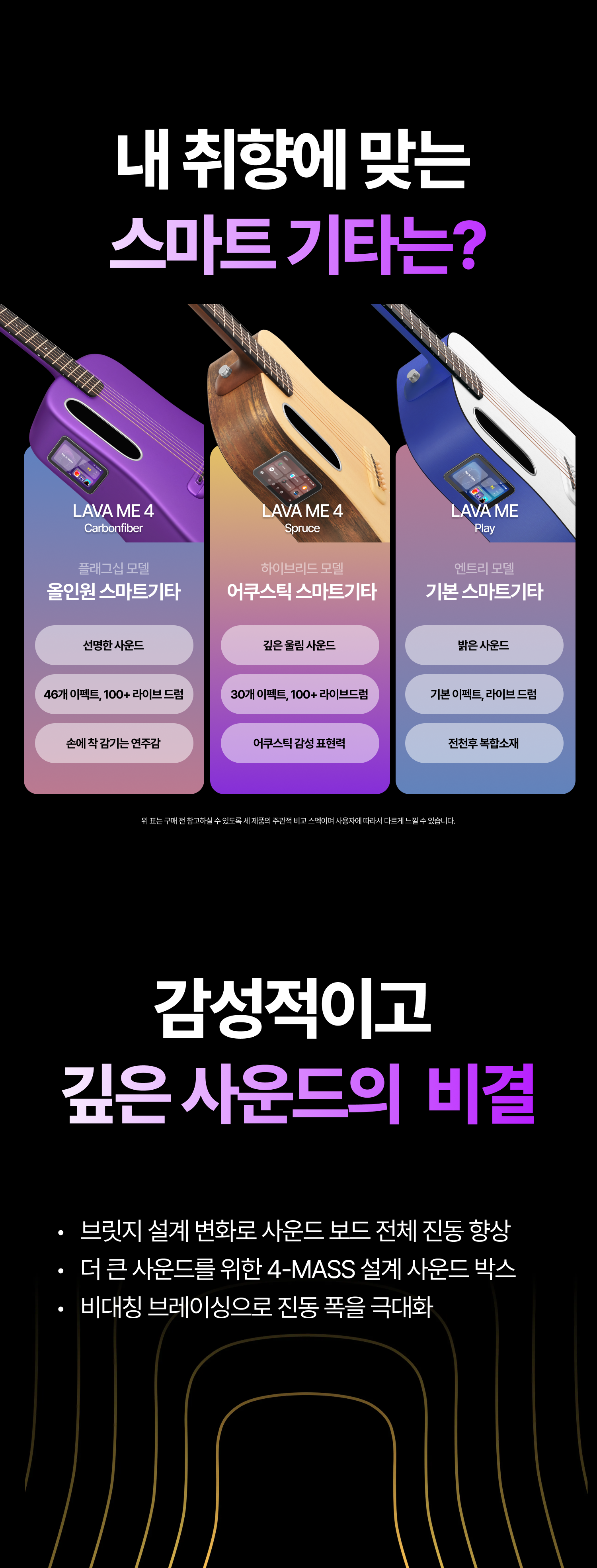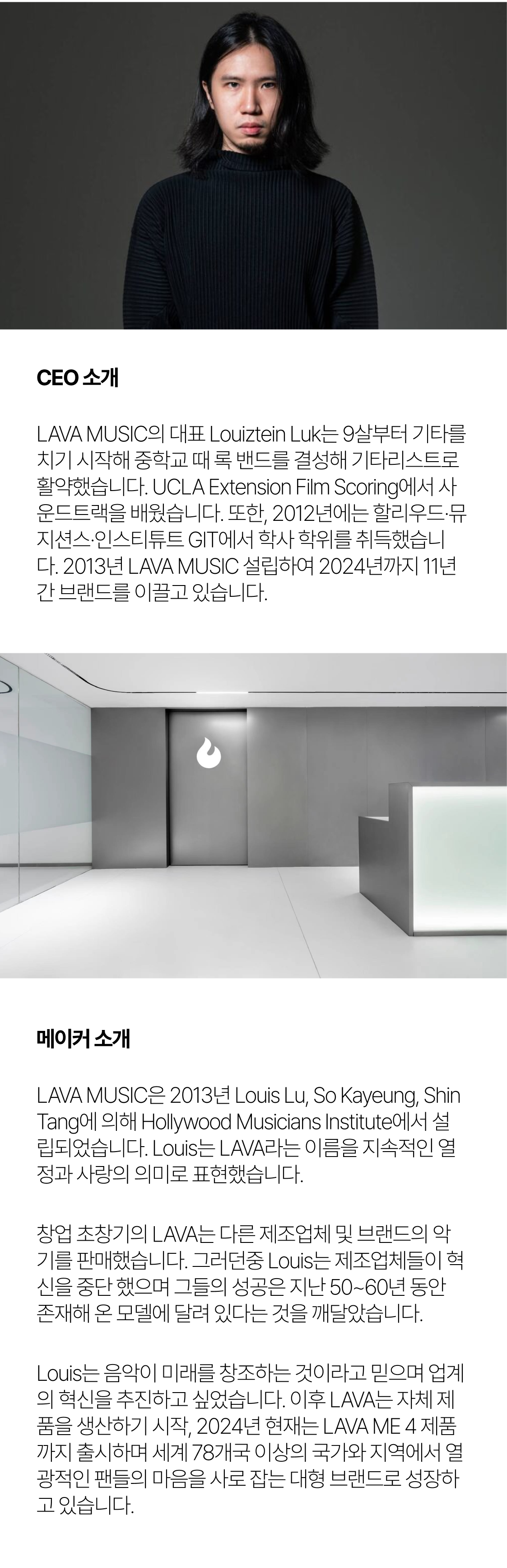 LAVA MUSIC의 제품들은 ‘악기를 위한 악기’, ‘전문가만을 위한 악기’가 아니라 모두의 삶에서 음악이 자연스럽게 녹아들어야 한다는 미션을 지향합니다. 기존 악기산업의 관행에서 벗어나 초보부터 프로까지, 취미부터 진짜 공연까지 여러분이 원하는 것이라면 무엇이든 할 수 있도록 다양한 라인업을 갖추고 있습니다.