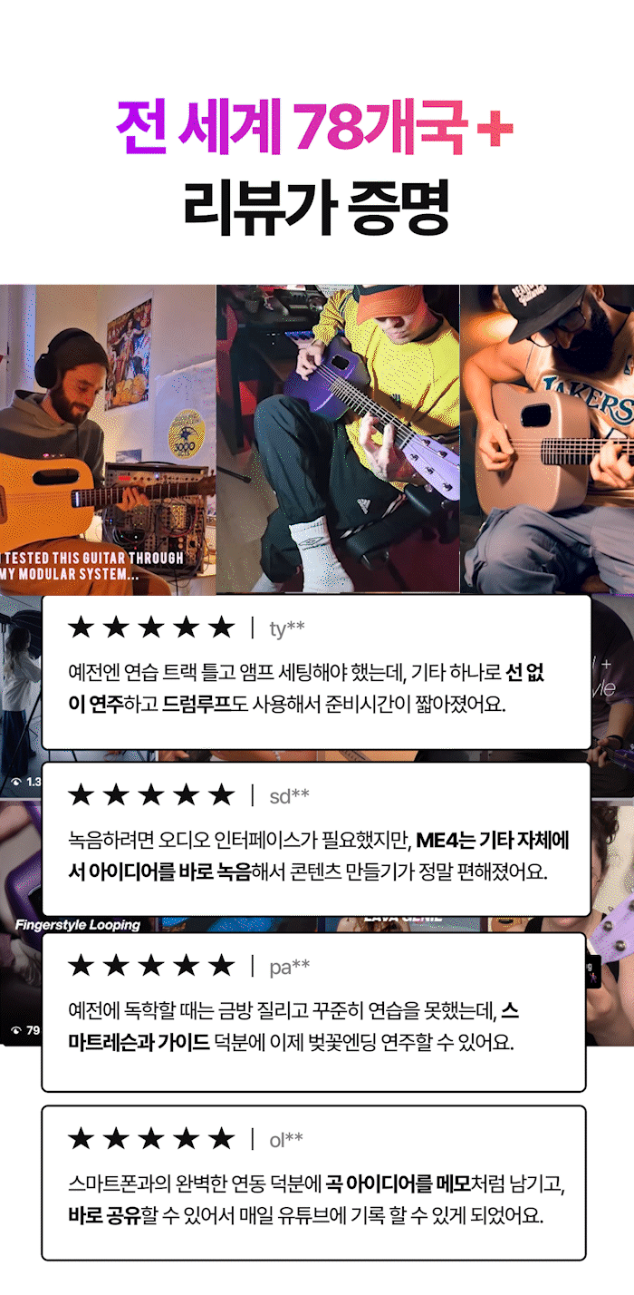 저희가 LAVAMUSIC과의 제휴를 하게 된 것도 이러한 지향점이 저희가 추구하는 방식과 결이 맞아서였습니다. LAVA MUSIC은 세계적인 스마트 카본 기타를 개발하고, 아마존에서도 충분한 경쟁력을 보였기 때문에 전략적 파트너로서 신뢰를 가지고 와디즈 서포터 분들께 LAVA 제품들을 소개해드리고 싶어서 이 펀딩을 진행하게 되었습니다. 앞으로도 인생에서 멋진 경험을 할 수 있는 좋은 제품을 좋은 가격에 제공하여 모두에게 더 나은 생활을 선사하고자하는 저희 존버드와 LAVA MUSIC을 응원 부탁드립니다.