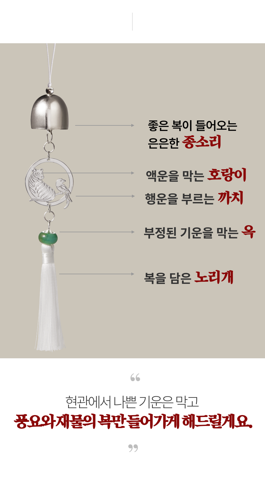 - 의미 있는 선물: 행운, 재물운, 액막이의 상징을 담아 마음을 전할 수 있는 의미 있는 선물로 제격