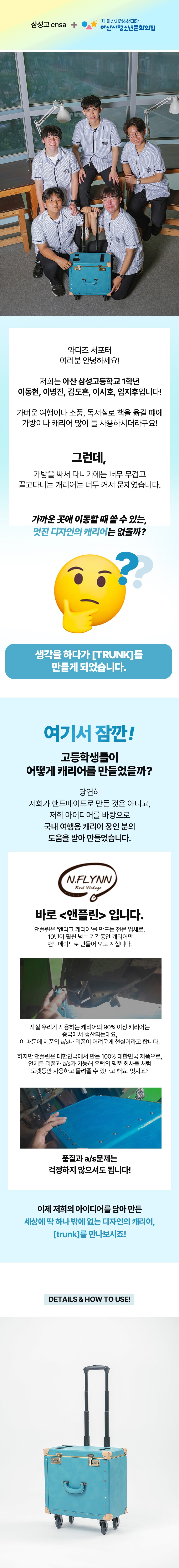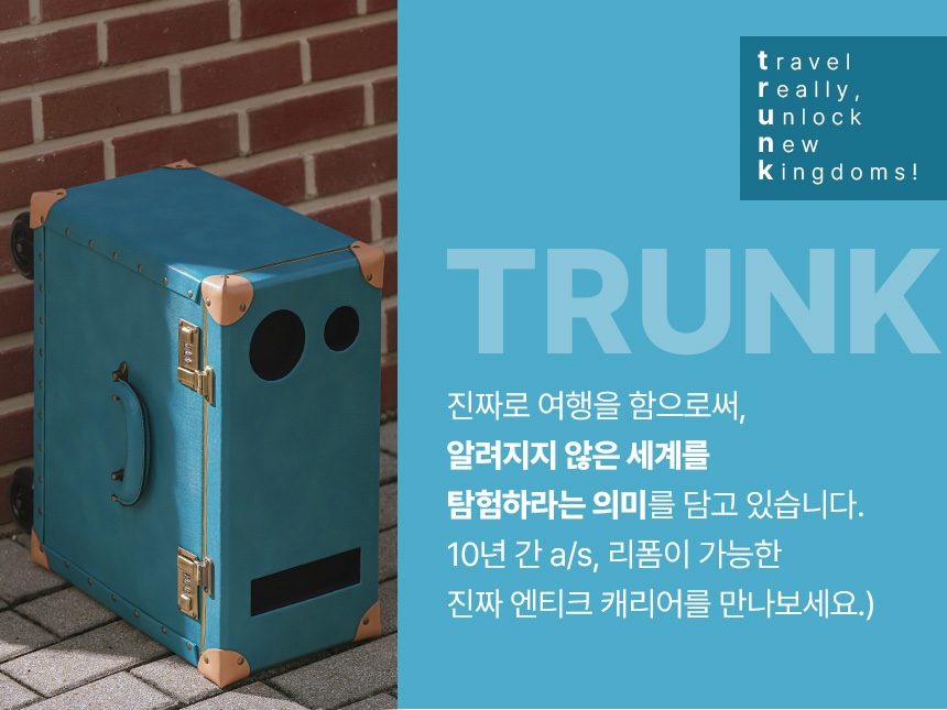 너무 크지 않아서 실용적이고 세워서도 쓸수있고, 끌고 다닐수도 있는 2way 캐리어 유럽 헤리티지 스타일의 [TRUNK]를 소개합니다. [2025 아산시 청소년 스타트업 프로그램]