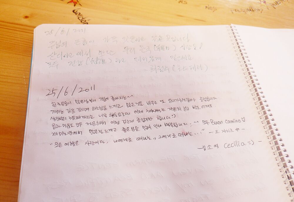 순례길 위에서 어느 알베르게에 썻던 방명록