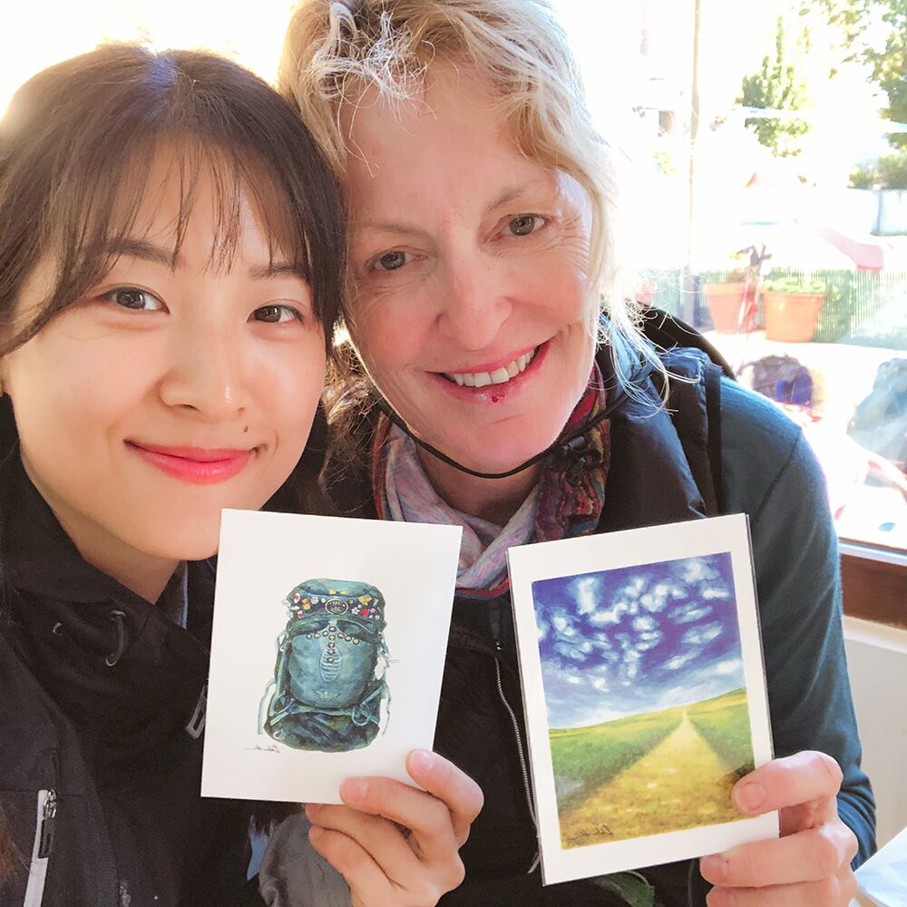 캄캄한 새벽에 서로 의지하며 걸은 아주머니께 산티아고 엽서 선물