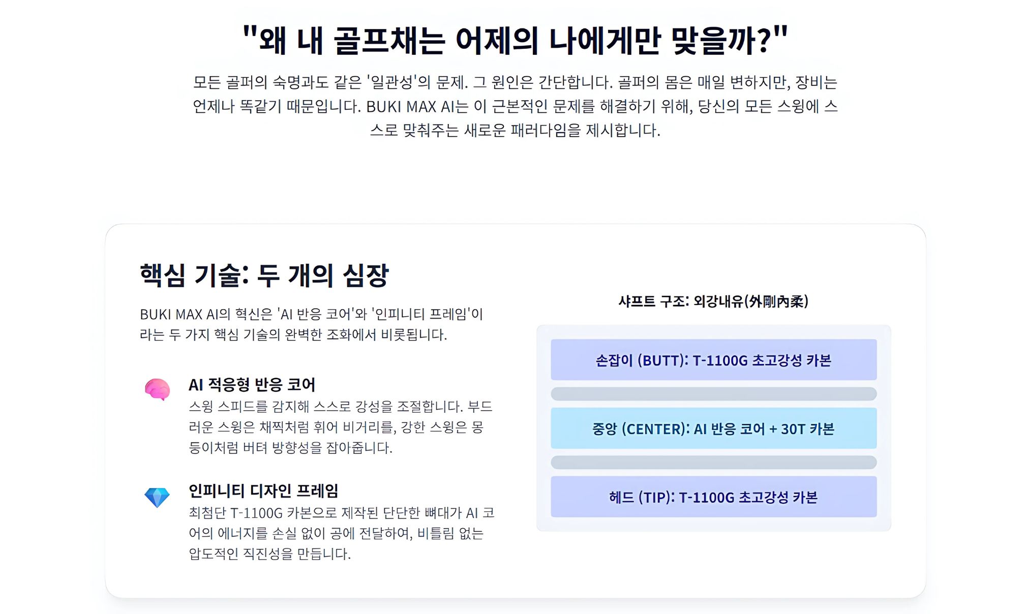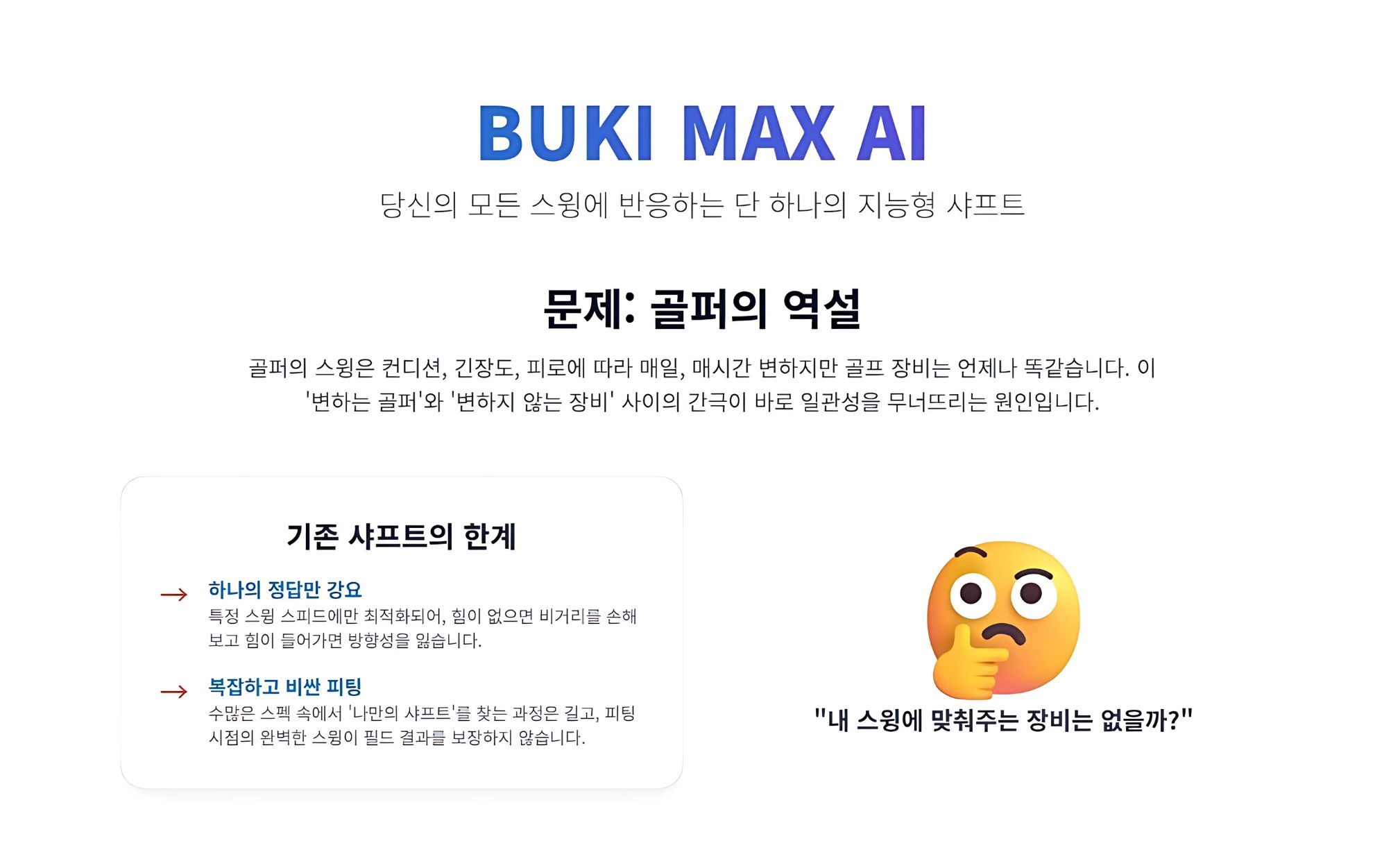 BUKI MAX AI Artifical Intelligence Series는 바로 이 '변하는 골퍼'와 '변하지 않는 장비' 사이의 근본적인 문제를 해결하기 위해 태어났습니다.