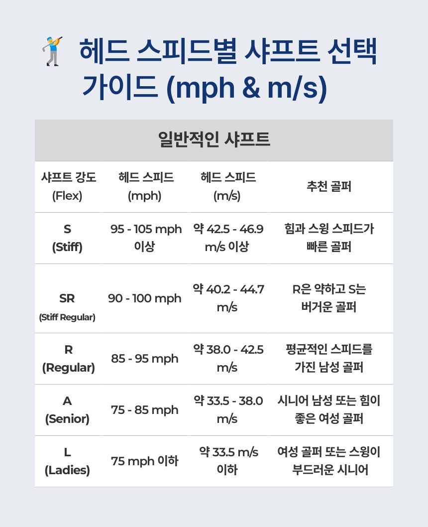 만약 골퍼가 자신의 평균 헤드 스피드에 맞춰 '레귤러(R)' 강도의 샤프트를 사용한다고 가정해 보자.