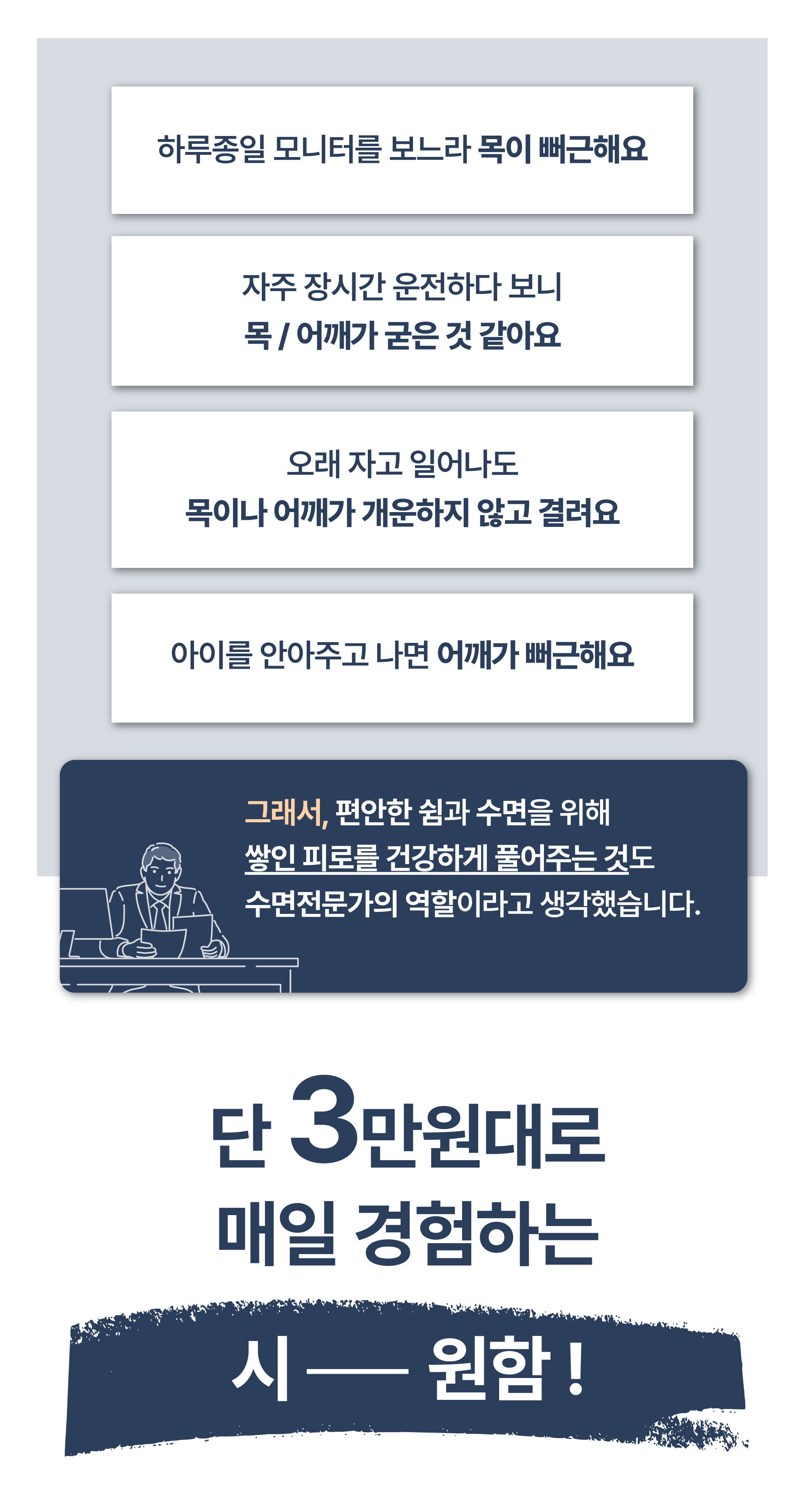 수면기본권을 온전히 제공하기 위해서는 수면환경을 포함한 수면오감을 만족시켜야 하며, 이를 위한 제품 개발은 오늘도 계속되고 있습니다. 예약구매 모금액은 앞으로 수면기본권을 완성하는 제품라인업을 개발하여, 온전한 수면기본권을 현실화할 수 있도록 사용될 예정입니다.