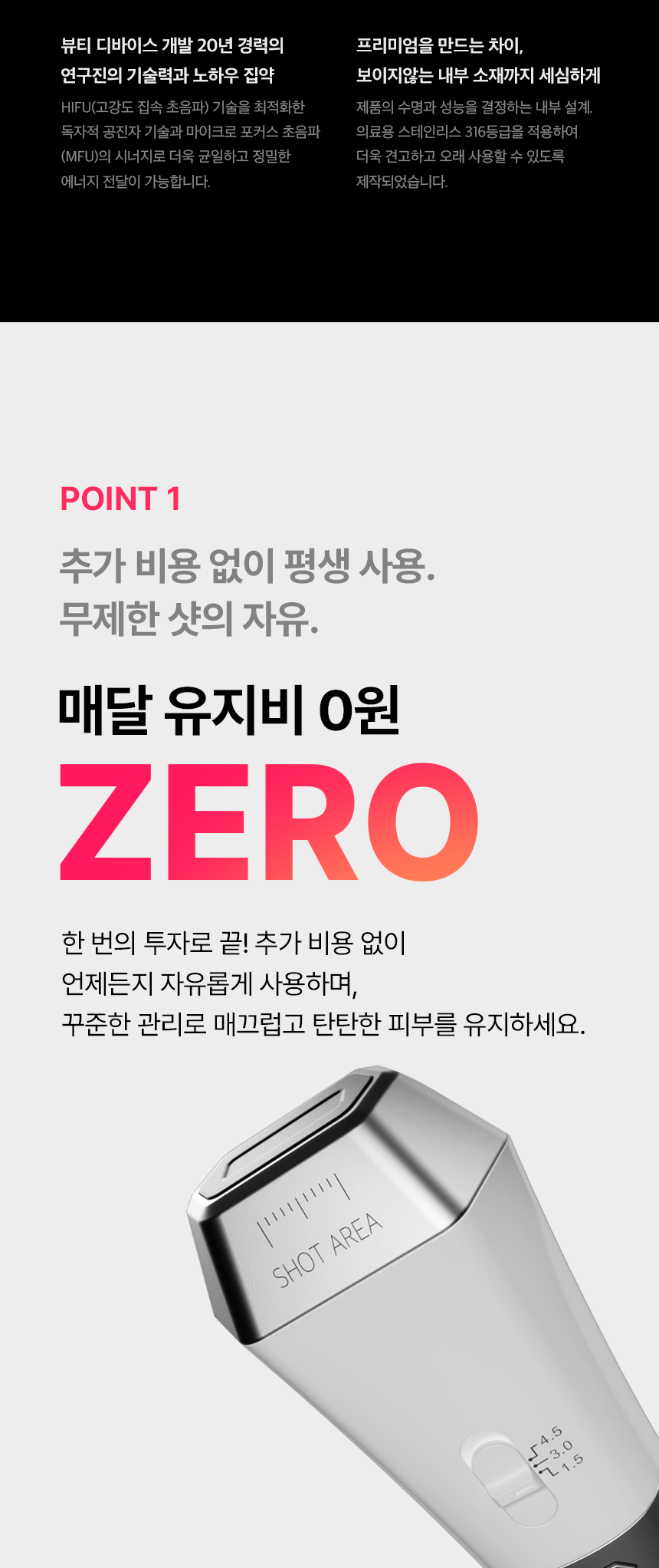 카트리지 하나로 세가지의 깊이조절, 1샷 10도트, 무제한샷을 구현했습니다.