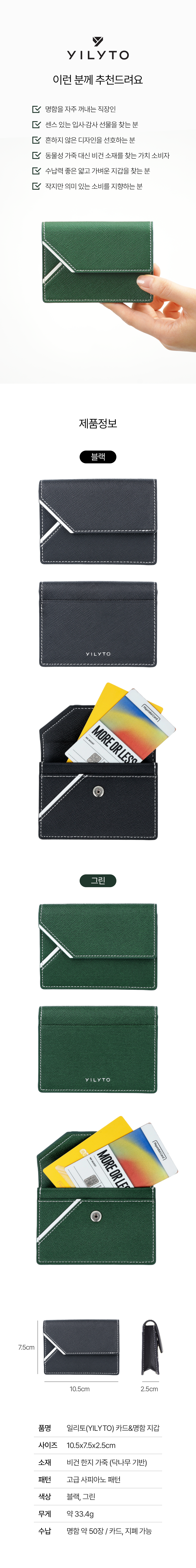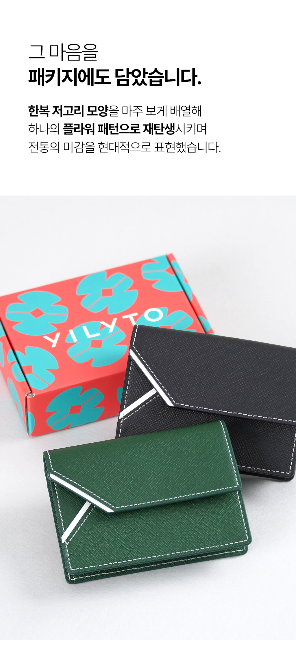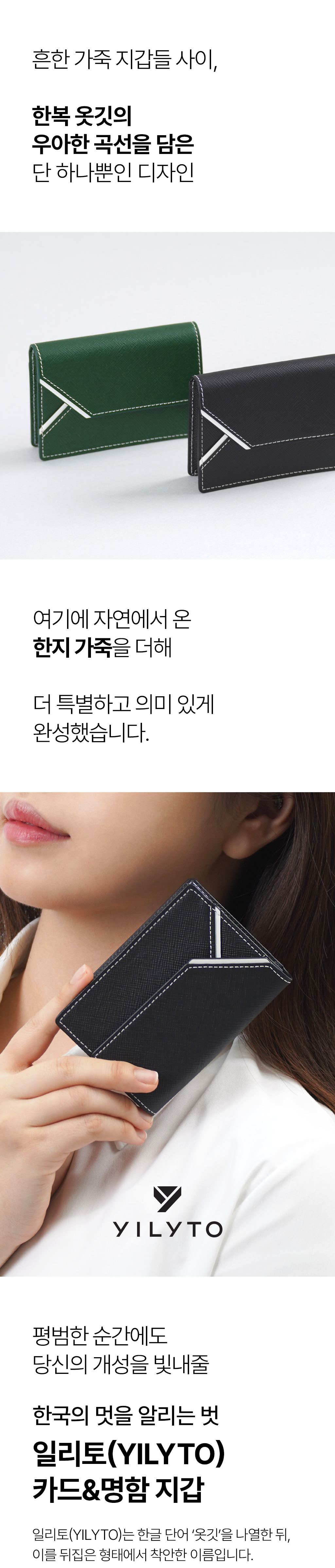 A. YILYTO의 명함지갑은 친환경 한지 가죽으로 제작됩니다.