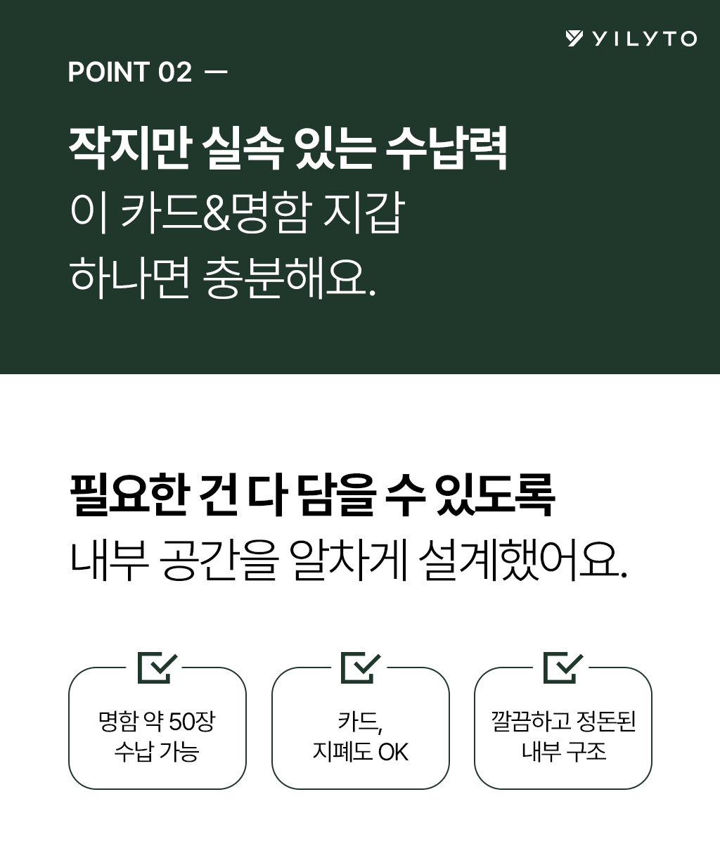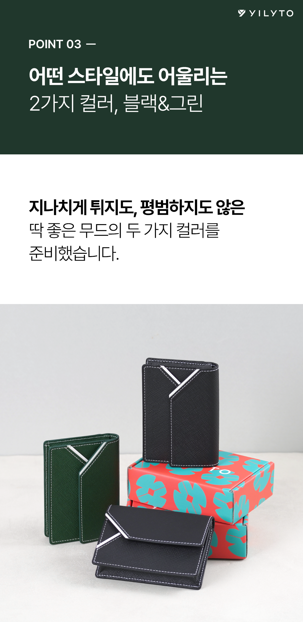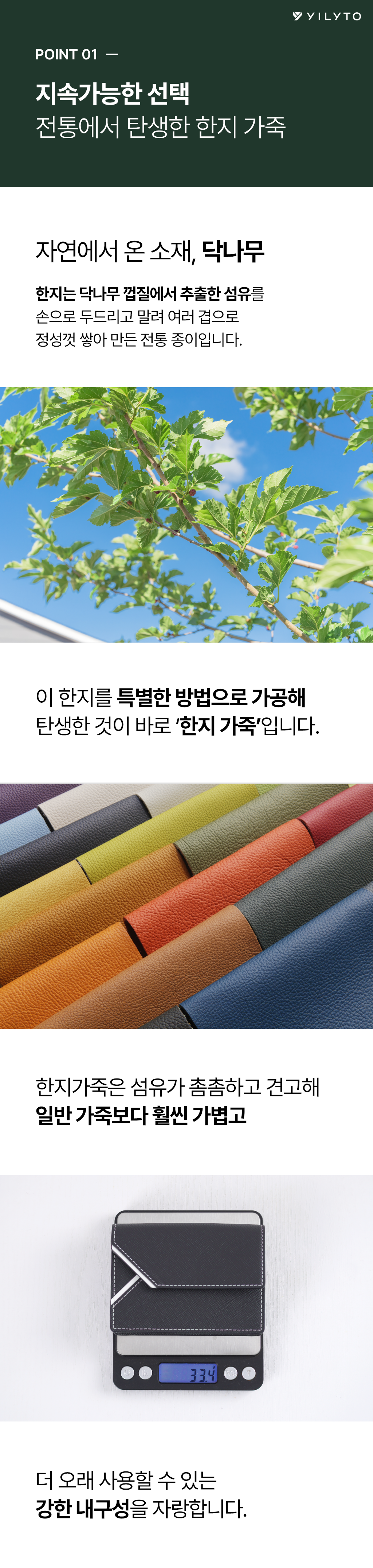 A. YILYTO의 명함지갑은 친환경 한지 가죽으로 제작됩니다.