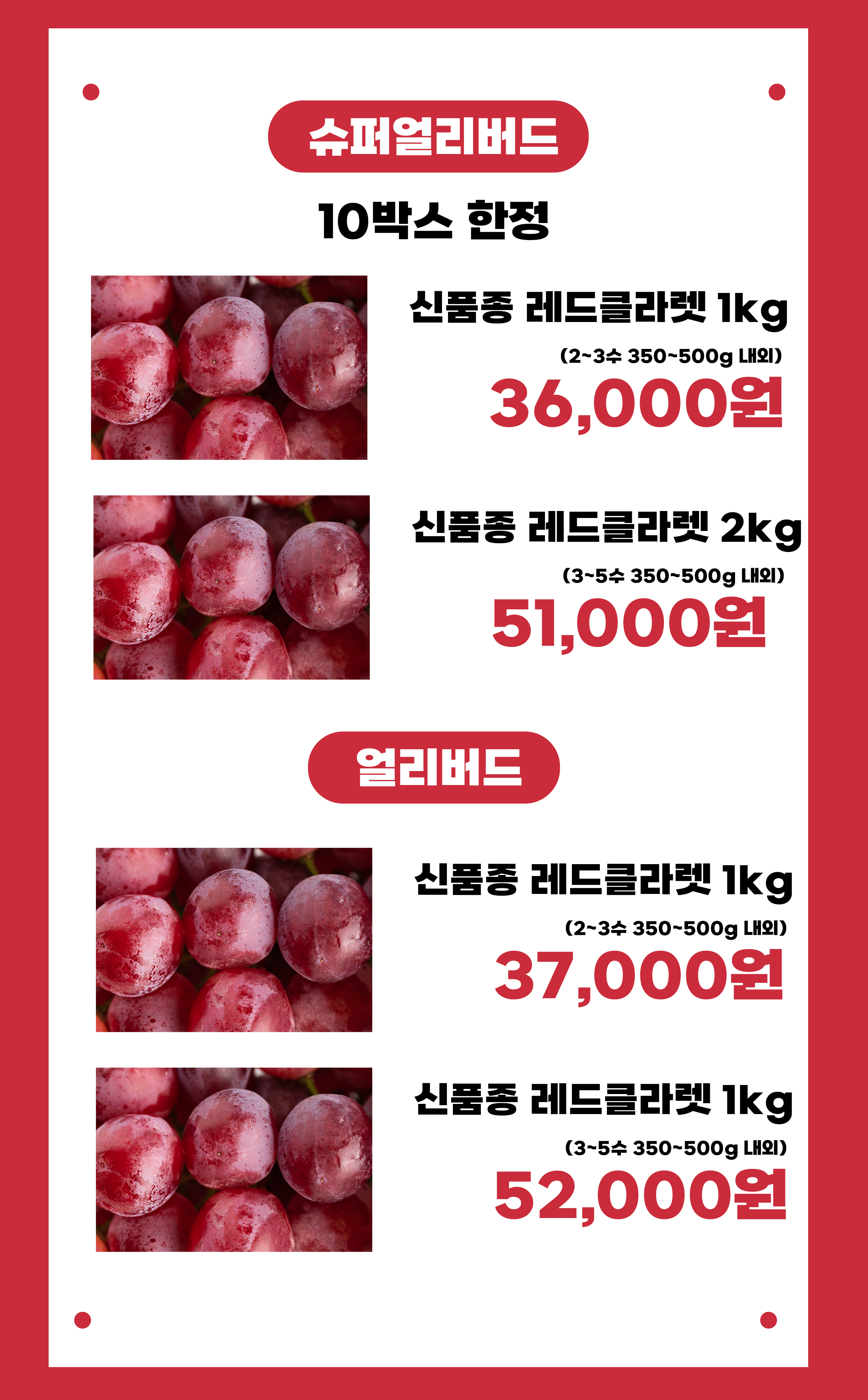 - 보관 방법 : 받으신 후 즉시 포도 상태 확인 후 개별로 냉장보관 하되 일주일을 넘지 말아 주세요.