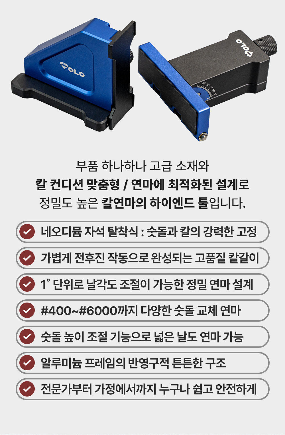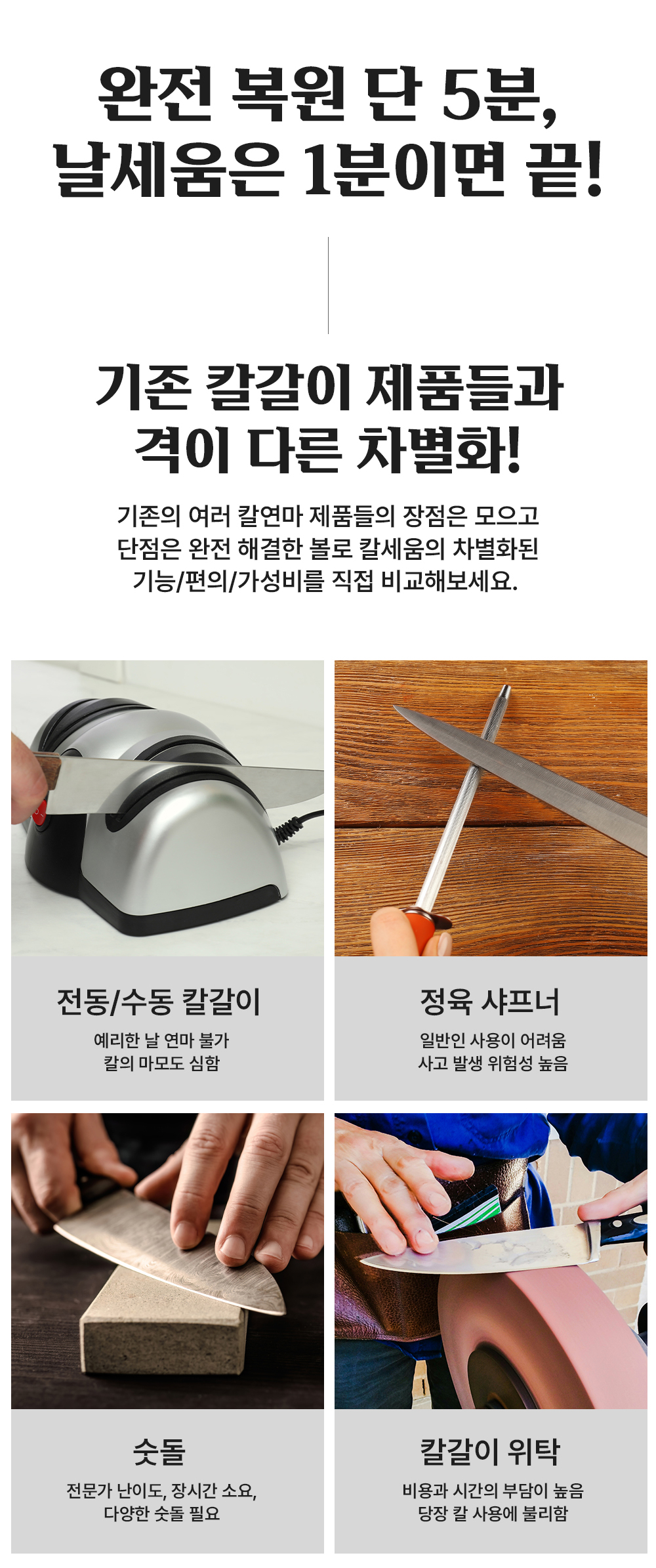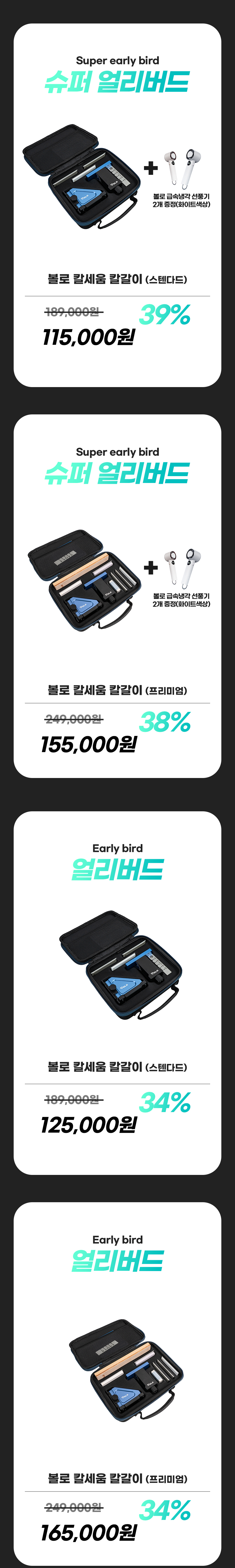1. 🔪 프리미엄 칼세움 칼갈이 - 정밀한 각도 조절과 다양한 숫돌로 칼날 예리함 복원 2. ⚙️ 손쉬운 사용과 안전성 - 초보자도 쉽게 사용할 수 있는 인체공학적 설계와 안전 기능 3. 💸 할인 및 증정 혜택 - 슈퍼 얼리버드 33~39% 할인과 프리미엄 구매 시 선풍기 증정
