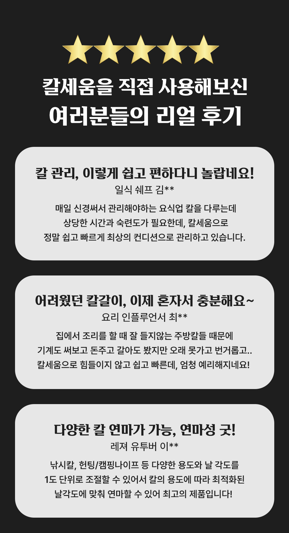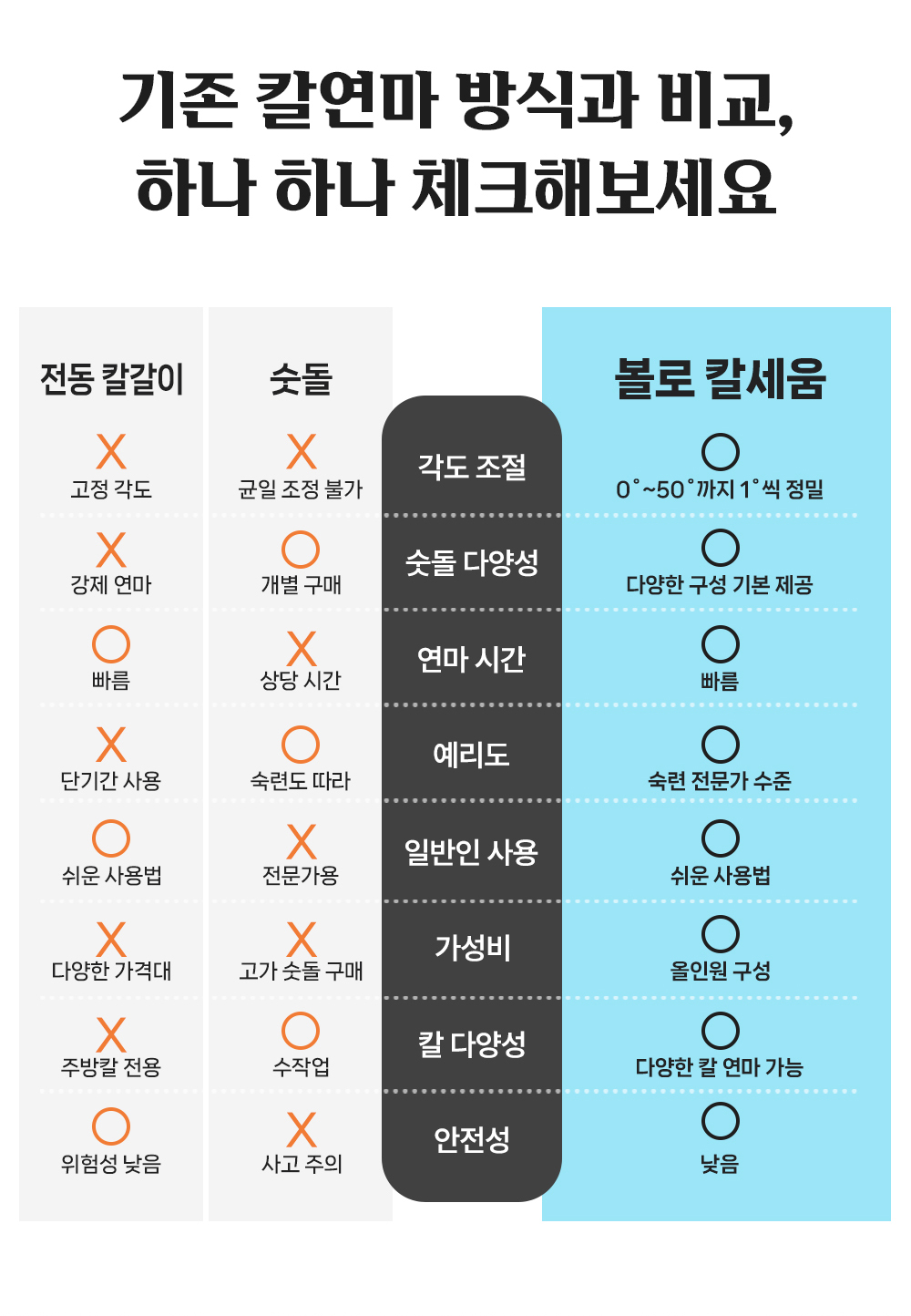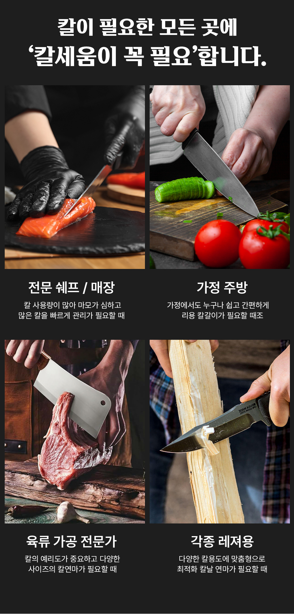 1. 🔪 프리미엄 칼세움 칼갈이 - 정밀한 각도 조절과 다양한 숫돌로 칼날 예리함 복원 2. ⚙️ 손쉬운 사용과 안전성 - 초보자도 쉽게 사용할 수 있는 인체공학적 설계와 안전 기능 3. 💸 할인 및 증정 혜택 - 슈퍼 얼리버드 33~39% 할인과 프리미엄 구매 시 선풍기 증정