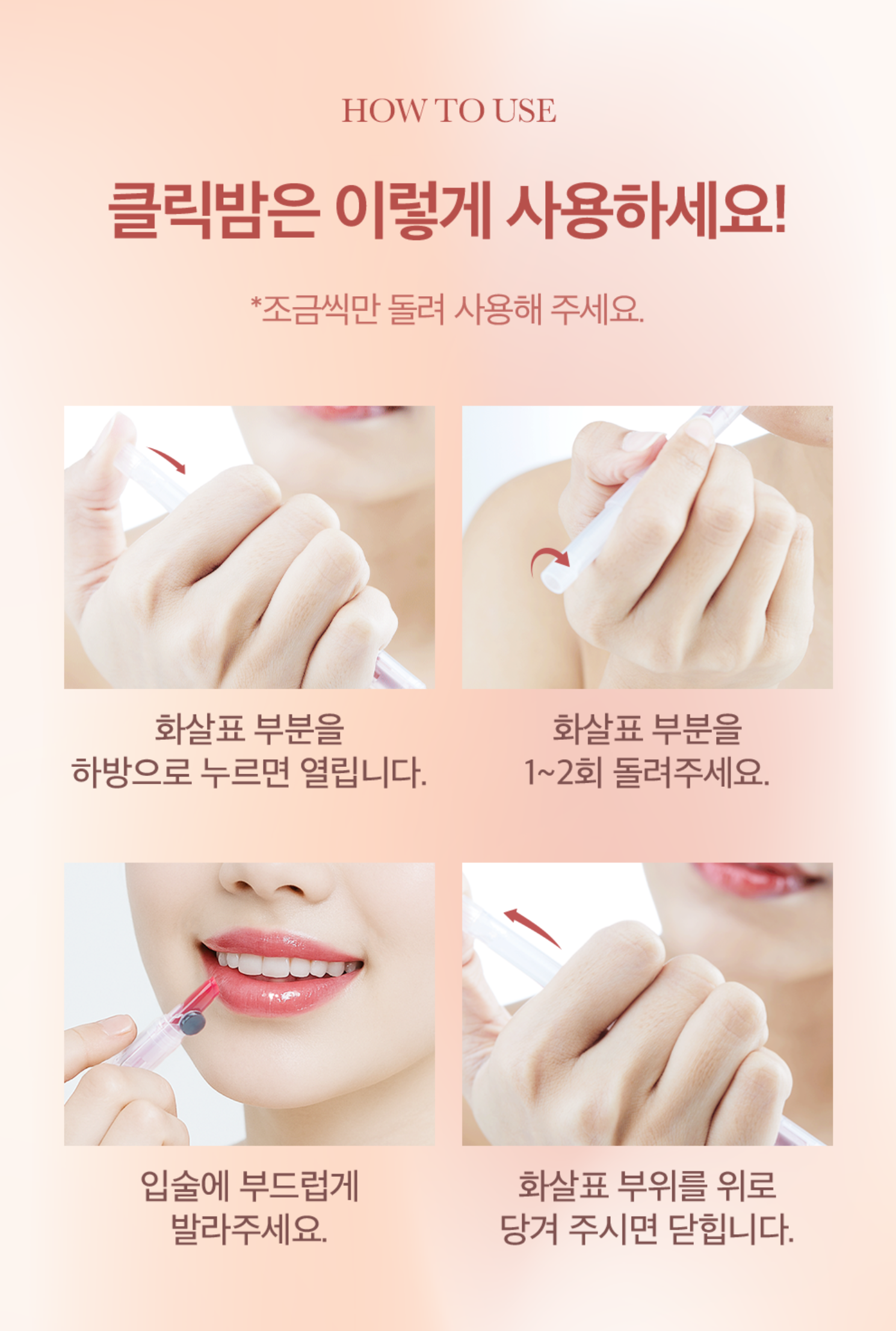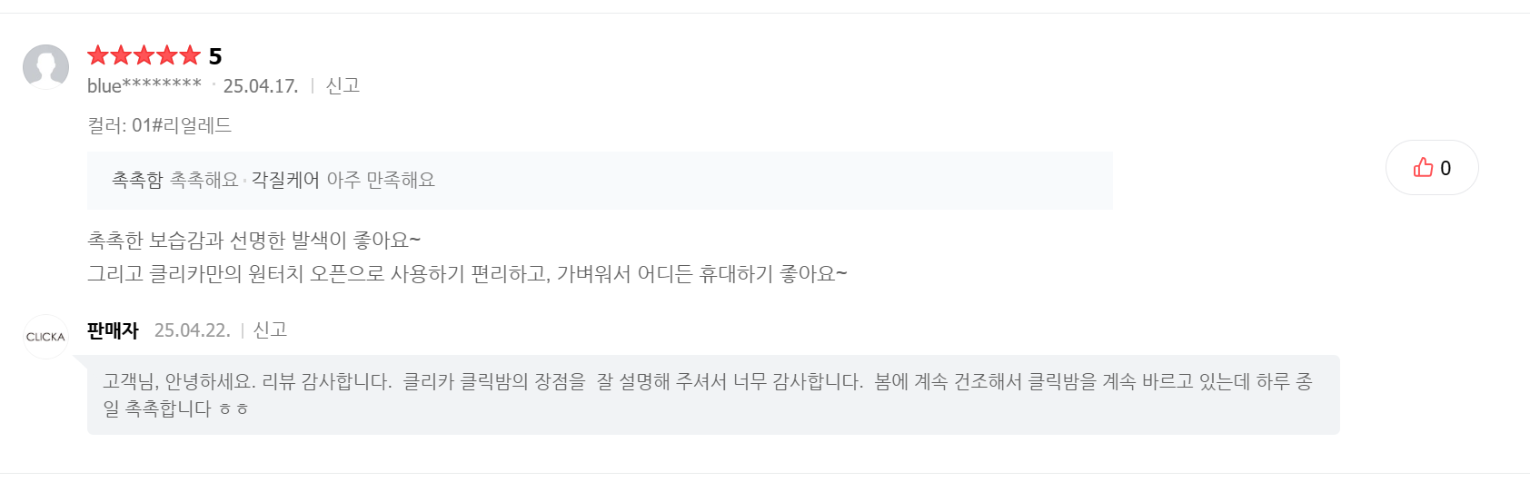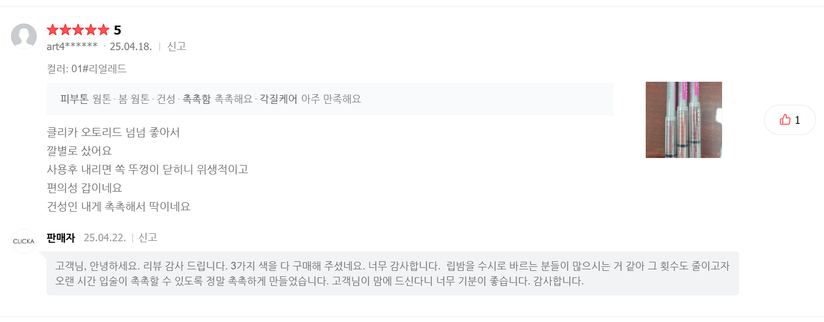 클리카 클릭 립밤을 써보시면 편리함과 립 케어에 만족 하시리라 생각합니다.