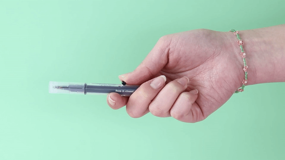 한 손으로 볼펜처럼 눌러 쓰고 보지 않고 바로 닫을 수 있어 간편해요.- 볼펜 정도 사이즈로 어디든 휴대가 편해요.