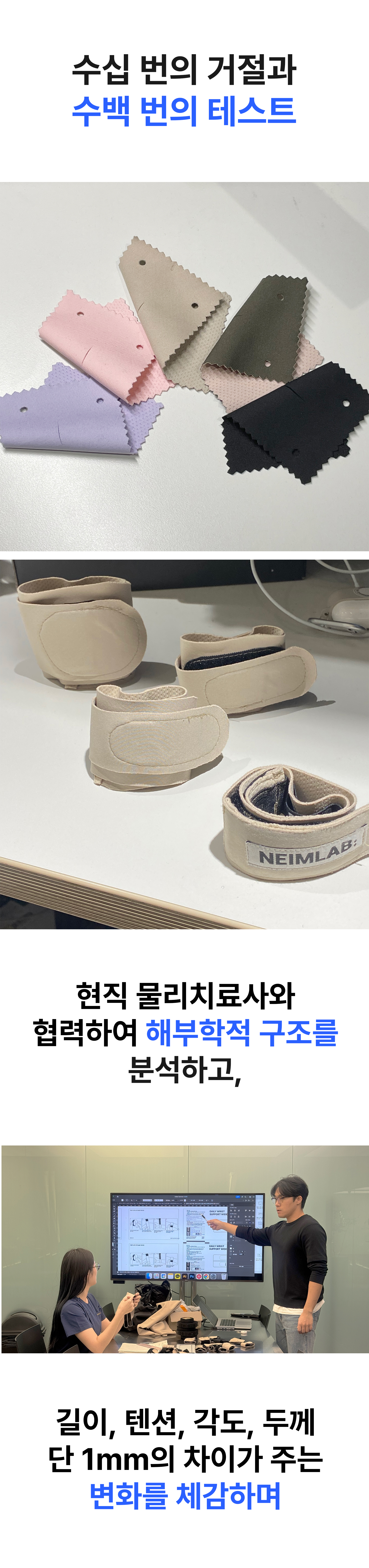 불편한 손목 보호대에 지쳐, 직접 만들기 시작했습니다. 그렇게 탄생한 네임랩 손목 보호대는 부모님, 바리스타, 선생님, 운동선수 등 서로 다른 일상 속에서 손목을 사용하는 많은 분들로부터