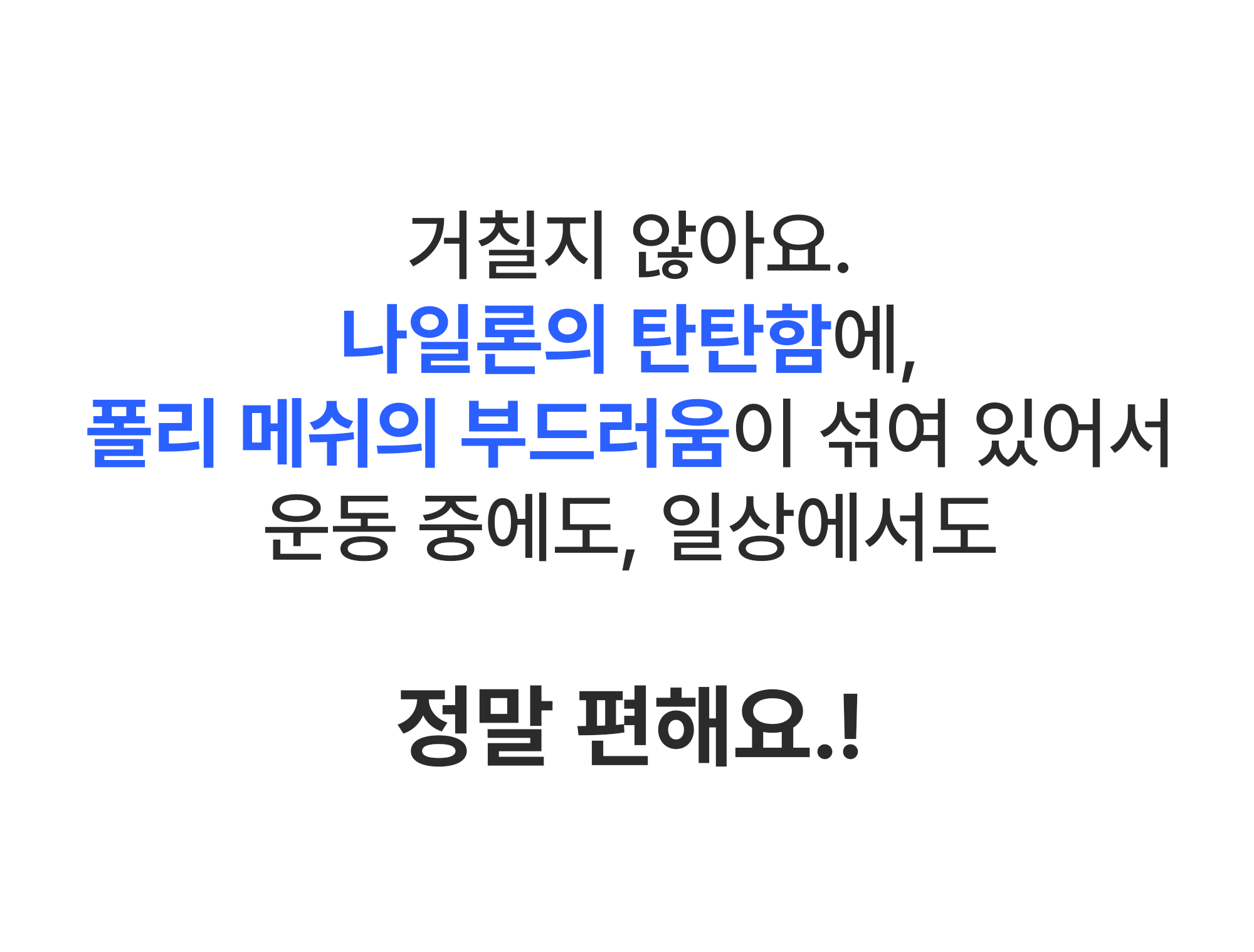 장기간 사용해도 쉽게 늘어나거나 해지지 않습니다. 운동, 업무, 일상 어디서든 안심하고 오래 사용할 수 있습니다.