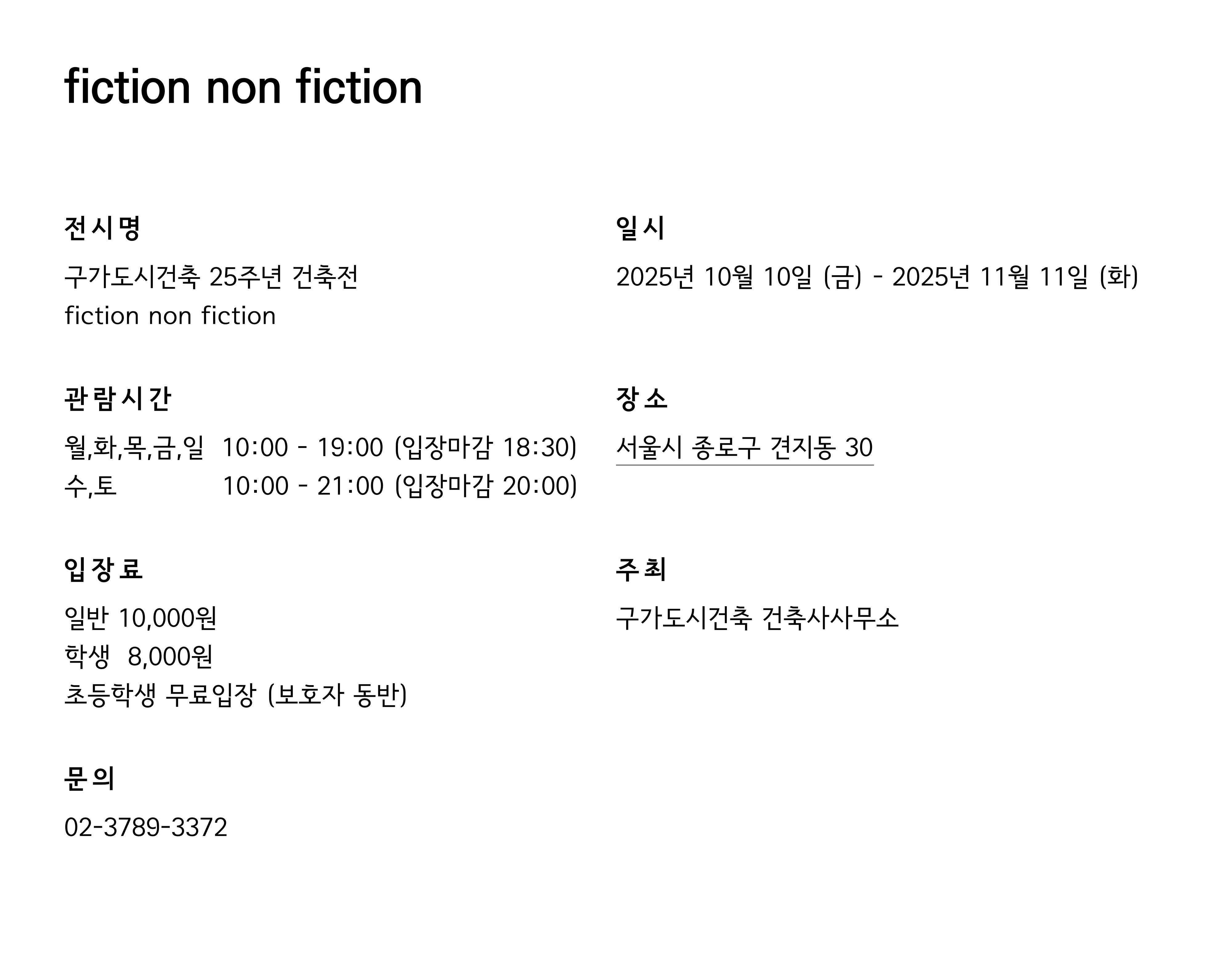 구가도시건축 25주년 건축전 《fiction non fiction》 공식 인스타그램