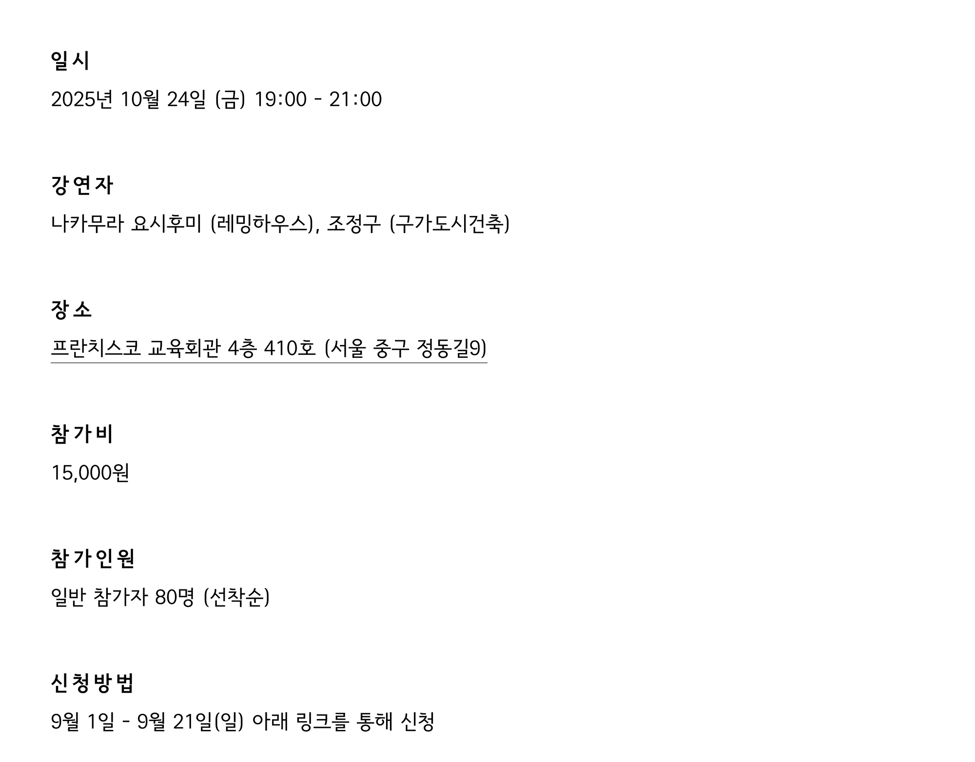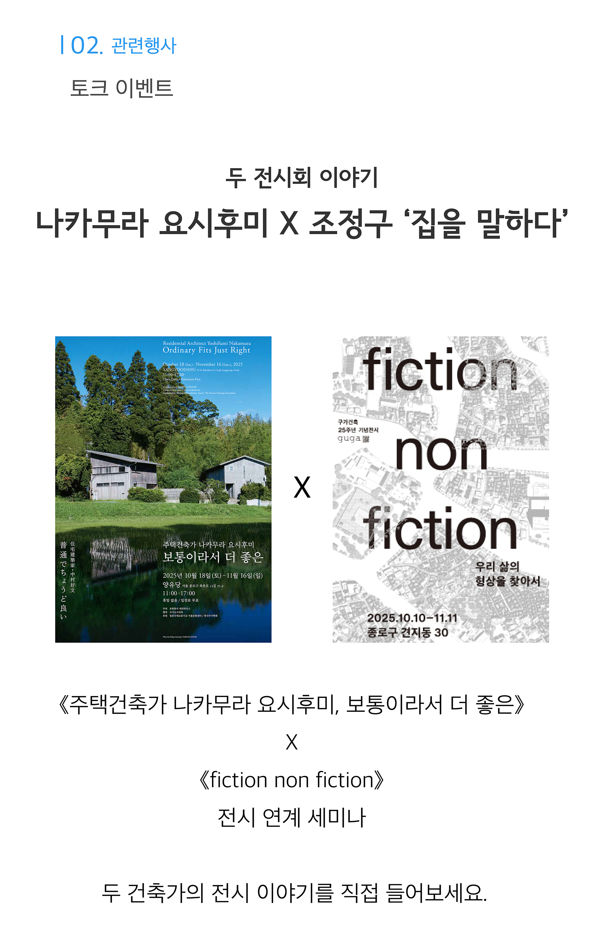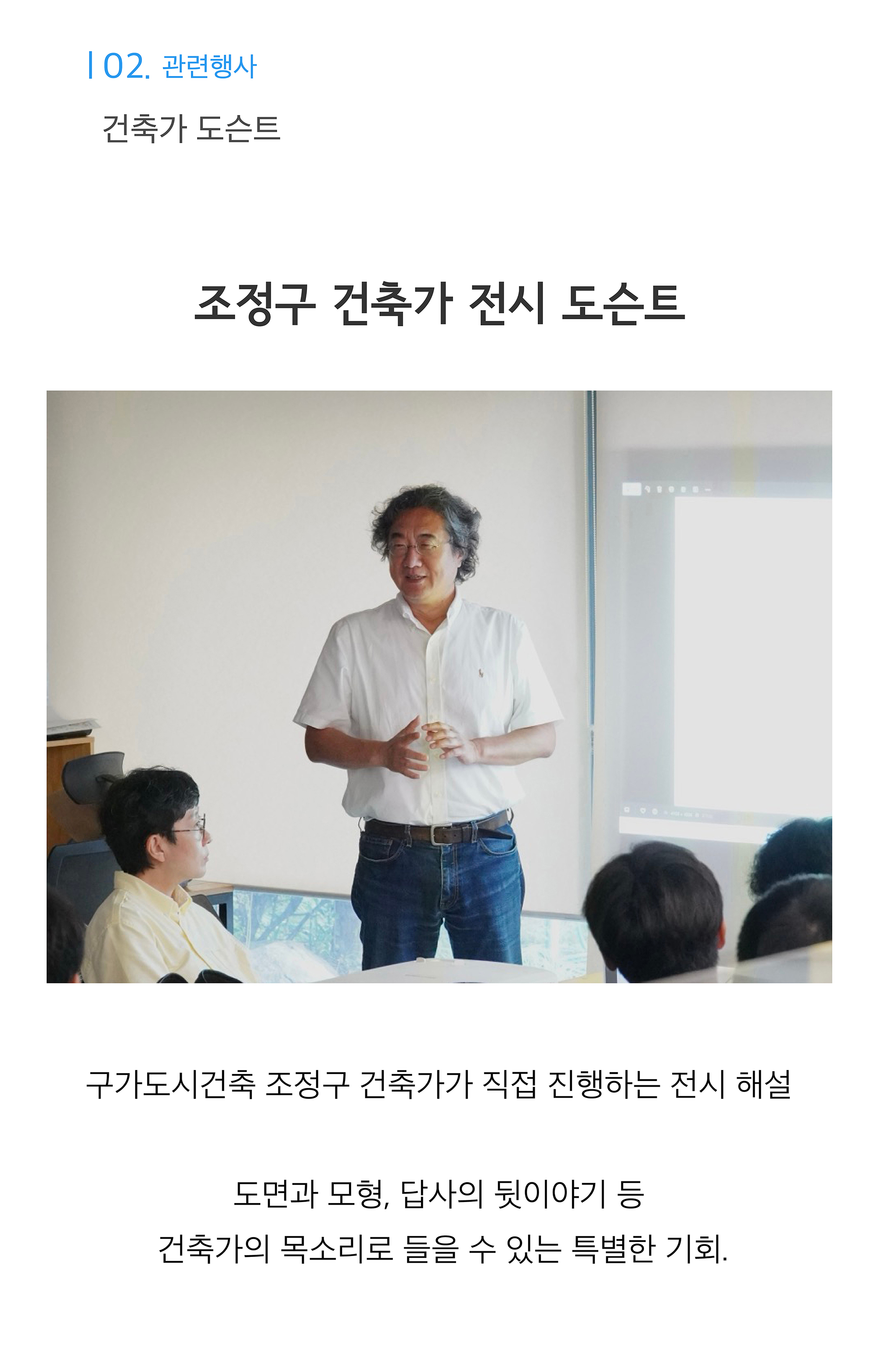 - 건축가 좌담회, 북토크 등 전시 연계 행사 일정 및 예약