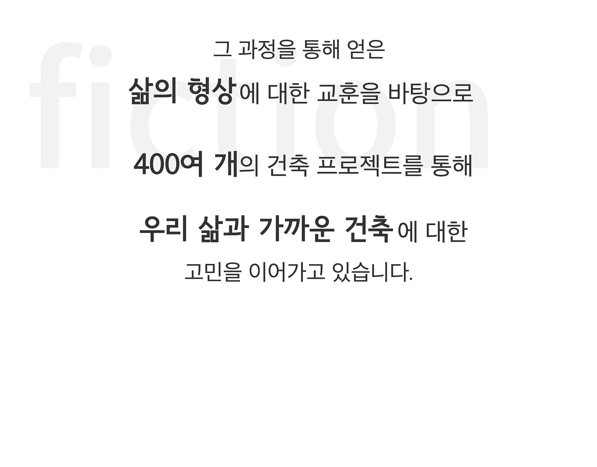 이 두 작업의 균형과 소통을 통해 저희는, 보편적인 도시건축과 그 속에서 전개되는 다양한 주체와 삶을 인식하며 작업에 임하고 있습니다.