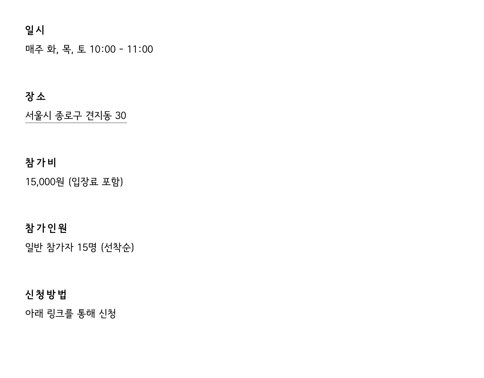 - 주차는 불가하오니, 대중교통을 이용해 주세요.