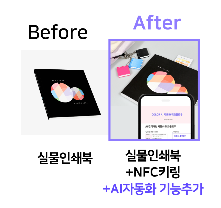 각 분야의 컬러 고민을 해결해줄 NEW 컬러디자인 배색북과 센스 있는 컬러선택을 돕는 AI 자동화 워크플로우 시스템을 결합한 새로운 프로젝트를 처음으로 공개합니다.