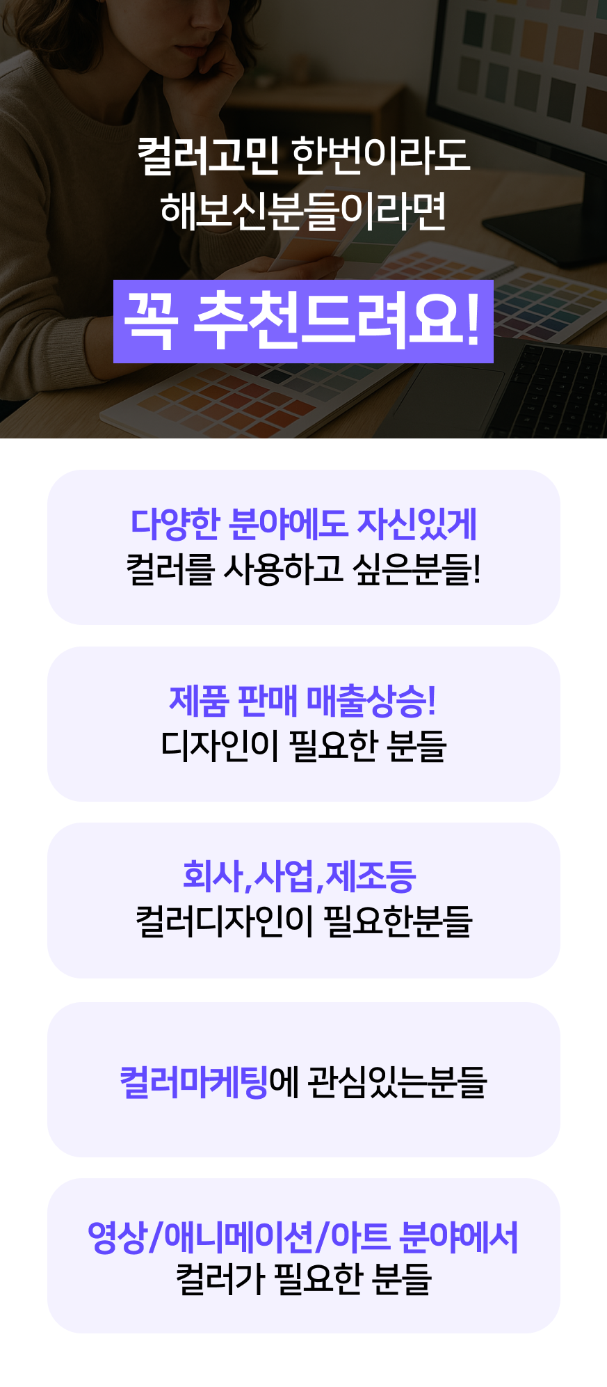 - 빠르게 변하는 트렌드 속에서 센스 있는 컬러 선택은 더욱 부담스럽게 느껴집니다.