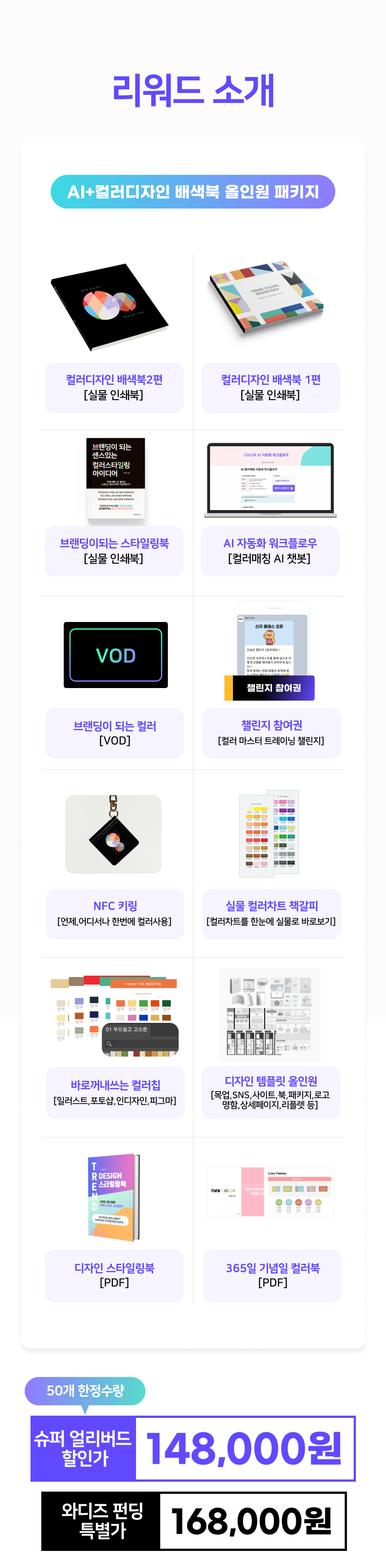 - 트렌드 컬러디자인 아이디어북 2편(컬러디자인 배색북) 41,000원 선물증정 : (컬러차트 책갈피 + 온라인 견본칩 + AI챗봇 + 디자인템플릿 올인원)