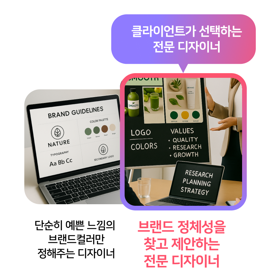 마케팅 메시지와 브랜드 철학을 시각적으로 표현하고,