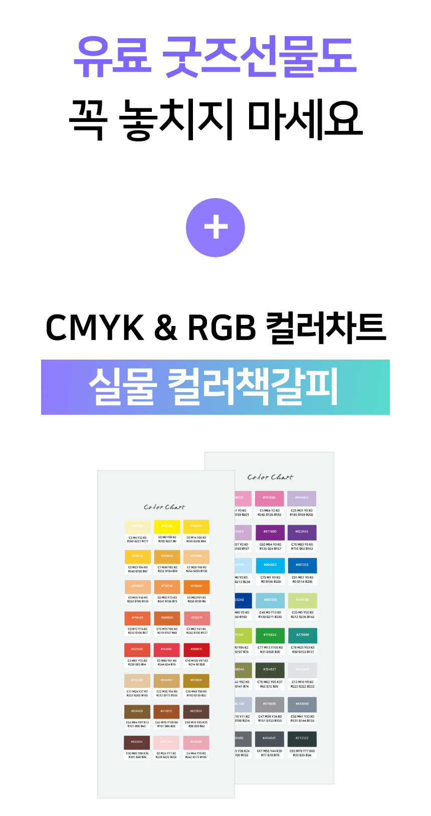 - 트렌드 컬러디자인 아이디어북 1편(컬러디자인 배색북) 32,100원 선물증정 : (컬러차트 책갈피 + 온라인 견본칩 + AI챗봇 + 디자인템플릿 올인원)