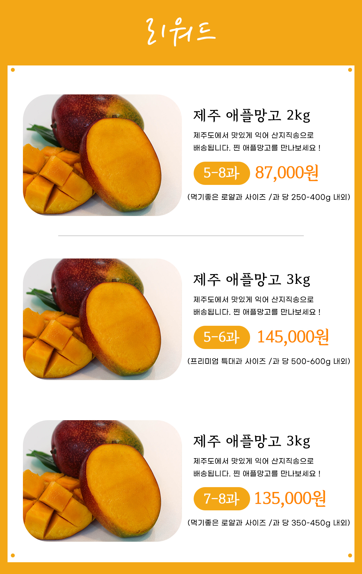 구성 : 제주 애플망고 2kg, 3kg / 로얄과, 프리미엄과