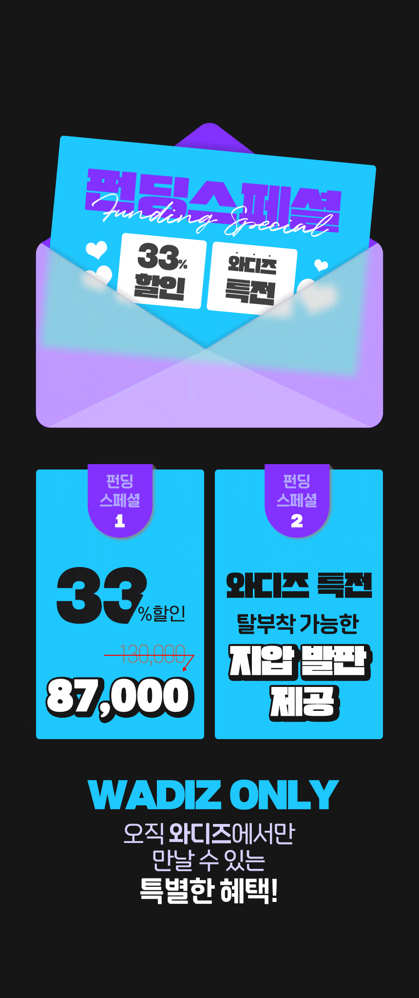 1. 🦶 무중력 에어쿠션 스텝퍼 - 관절 부담 줄이고 층간소음 걱정 없는 운동기구 2. 🎁 와디즈 전용 지압판 증정 - 탈부착 가능한 자석 지압발판 특별 추가 제공