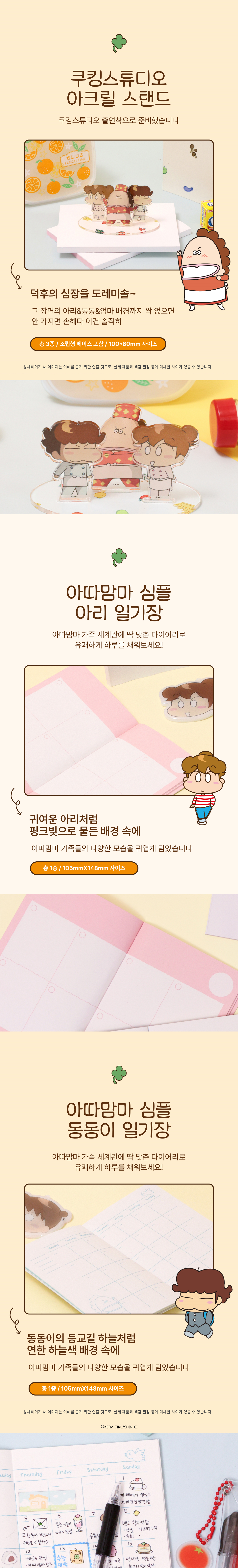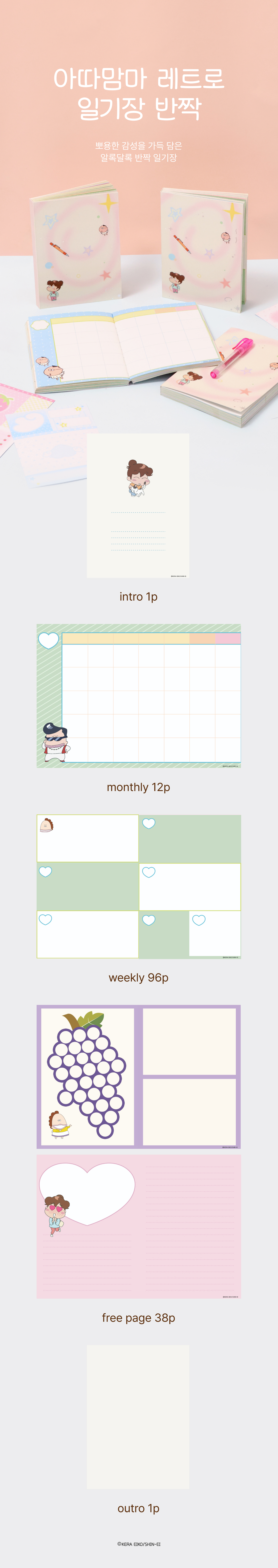 Q6. 향후 다른 캐릭터 굿즈도 출시 예정인가요?A. 네, 이번 펀딩은 아따맘마 굿즈 시리즈의 시작입니다.추후 식단일기를 비롯해 알록달록한 다이어리 굿즈가 추가로 공개될 예정입니다. 커뮤니티 탭을 통해 계속 안내드릴게요!