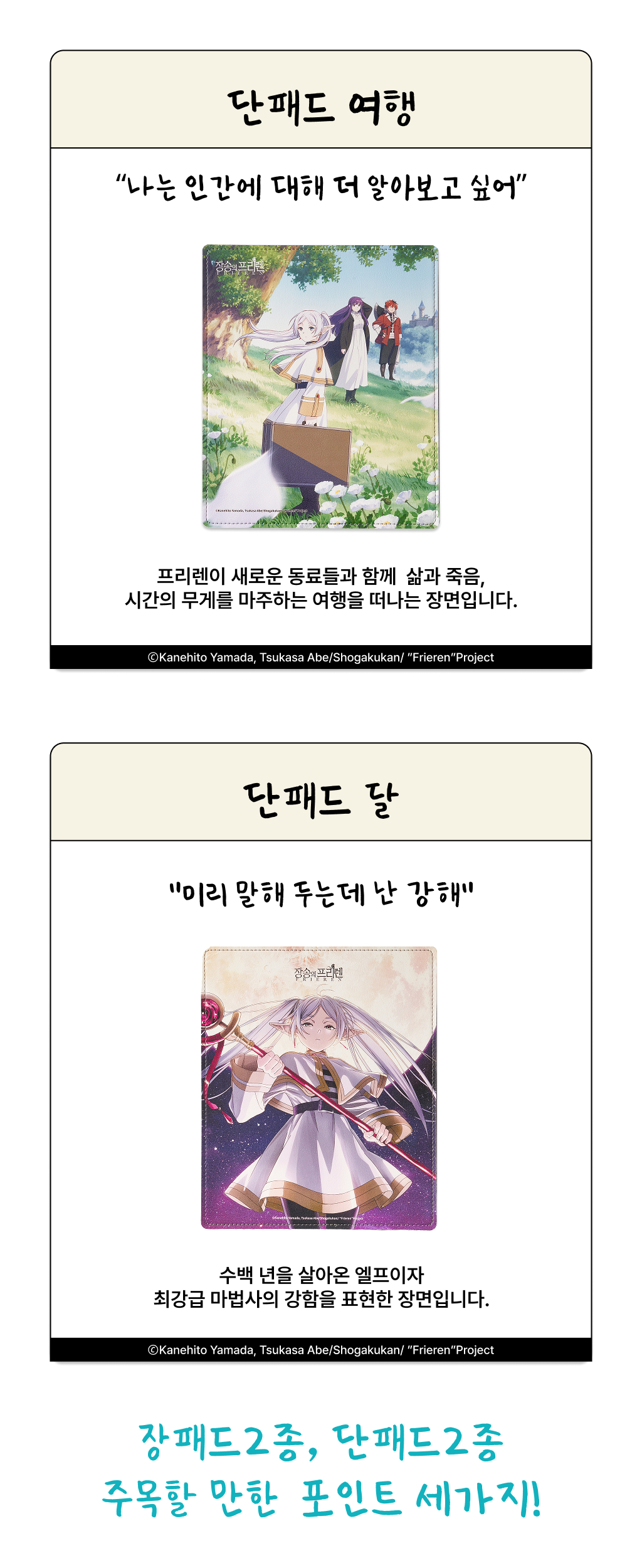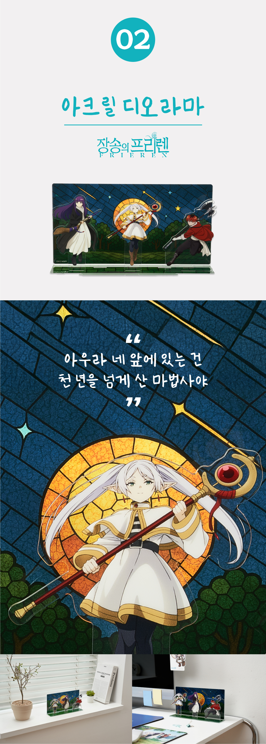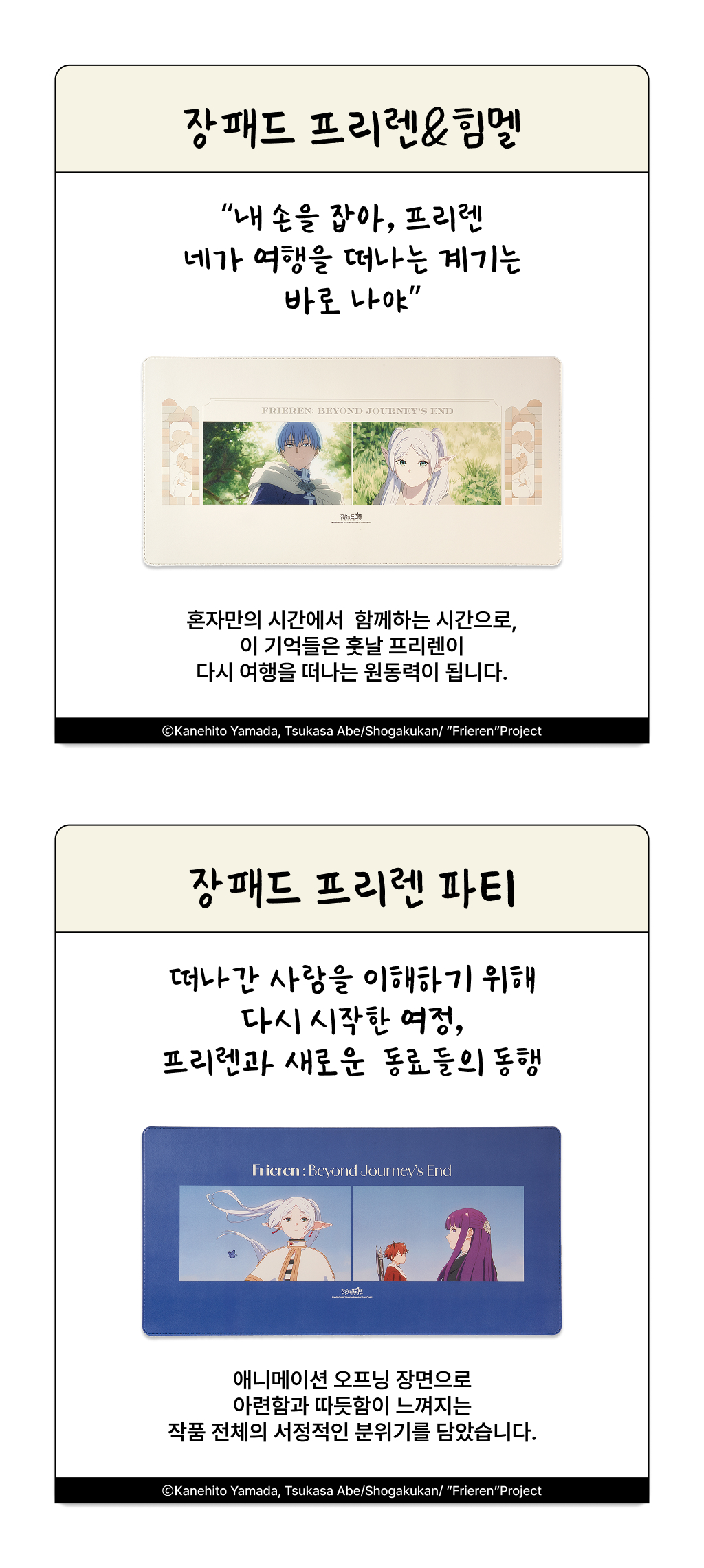 애니메이션이 선사한 깊은 여운을 저희만 간직하기 아쉬웠습니다. 팬들의 마음을 담아, 일상에서 그 따뜻한 감동을 소장할 수 있는 굿즈를 만들었습니다. 단순한 상품이 아닌, 프리렌과의 추억을 간직하는 매개체가 되기를 바랍니다