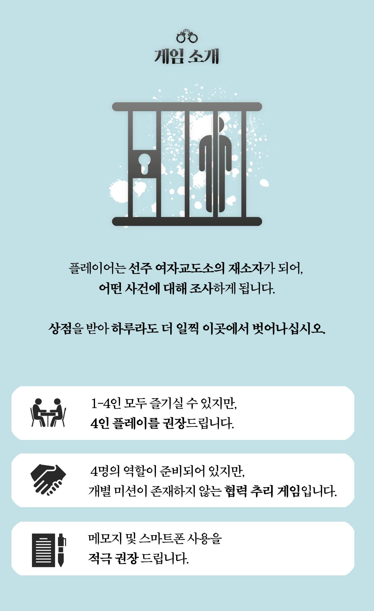 지난 2024년 <운명의 세 여신>이 성공적으로 후원할 수 있었던 이유 중 하나는 후원자분들에게 3부작을 통한 다양한 스토리와 접근성이 좋은 간단한 규칙 덕분이라고 생각합니다. 저희는 이번 유령섬 프로젝트 또한 이와 유사하다고 판단하여 보다 많은 분들에게 추리, 머더 미스터리 보드게임을 소개하고자 와디즈에서 프로젝트를 진행하게 되었습니다. 앞으로도 다양한 추리 머더 미스터리 보드게임을 선보일 수 있도록 많은 관심 부탁드립니다.