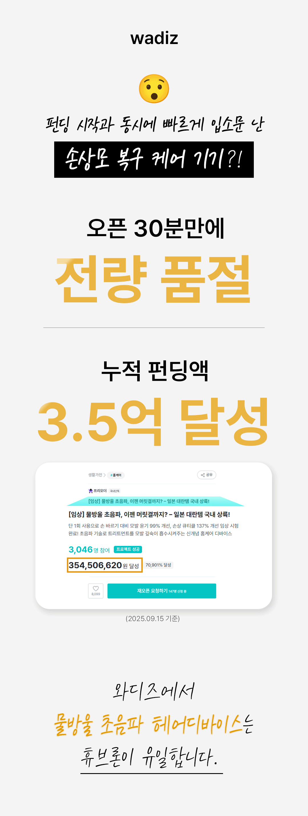 이번 펀딩을 통해 서포터 여러분에게 좋은 제품을 소개하고, 그동안 고민해왔던 머릿결 고민을 지워드리기 위해 와디즈를 찾아오게 되었습니다.