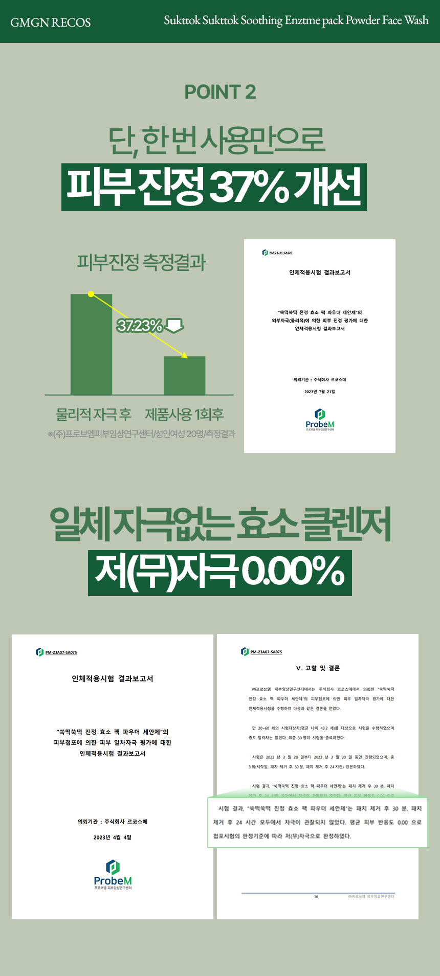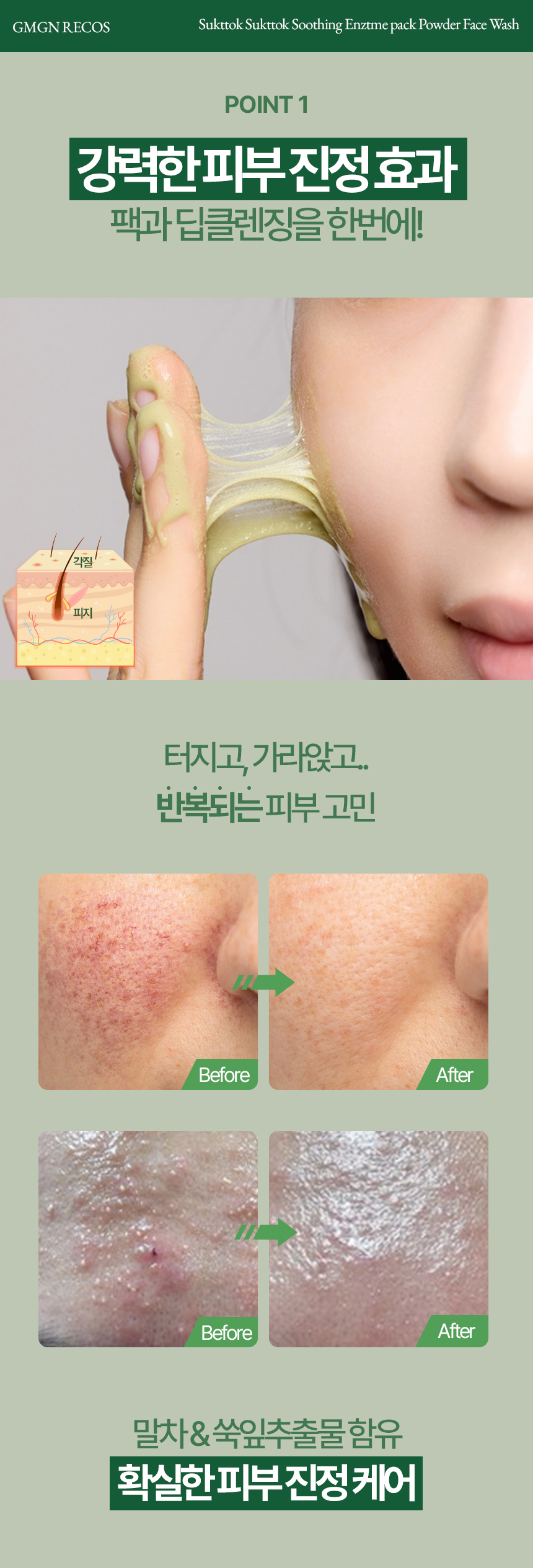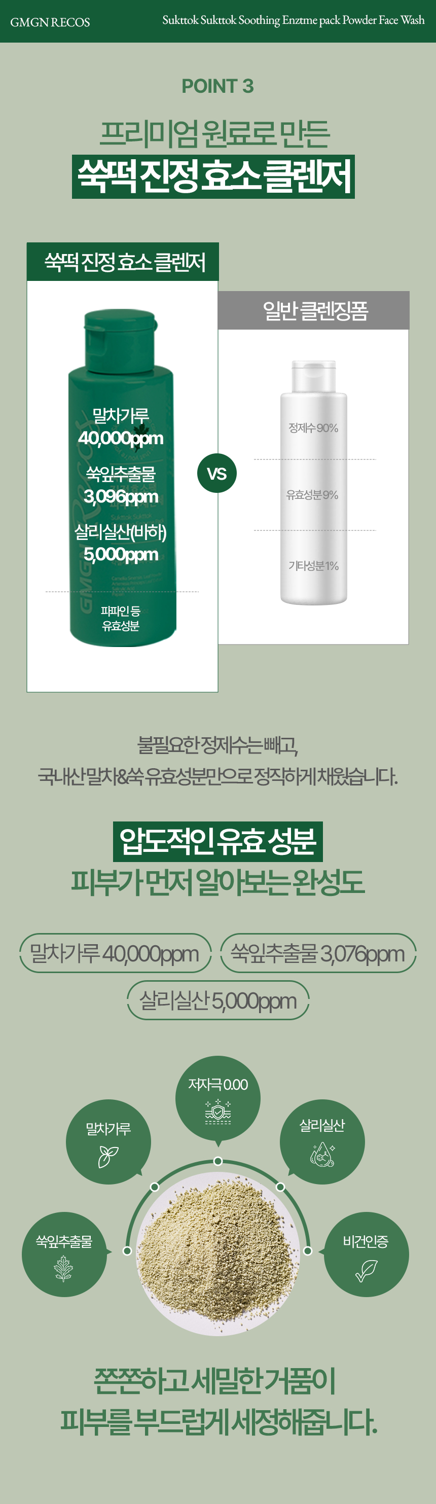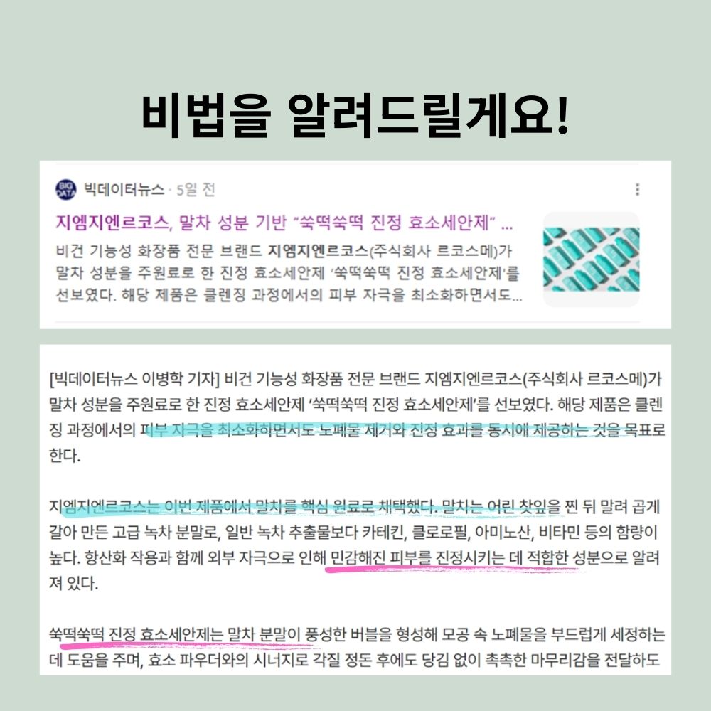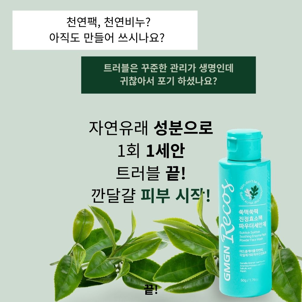 야심차게 준비한 지엠지엔르코스의 쑥떡 진정 효소팩 파우더 세안제를 제공하려고 해요.