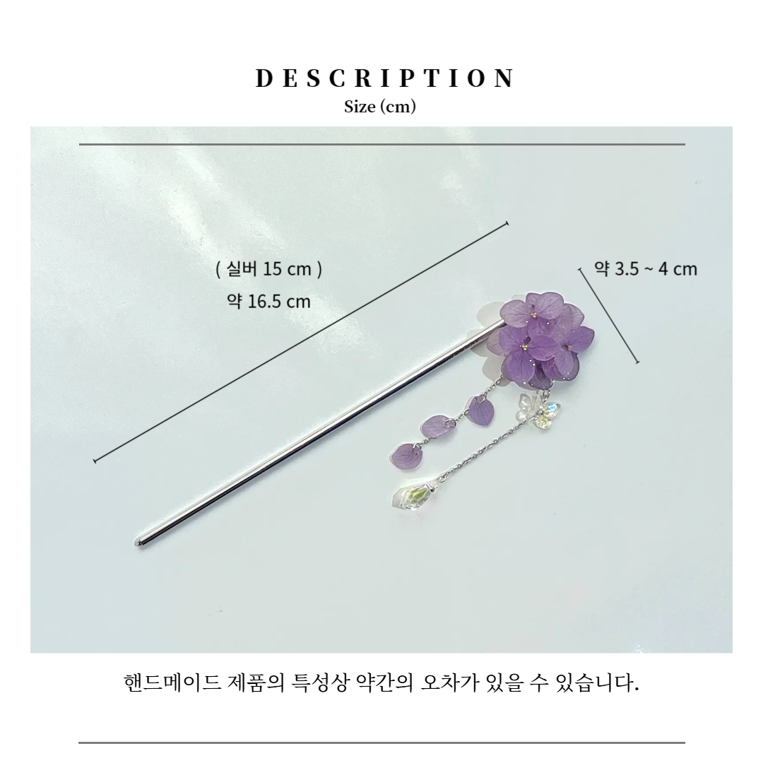 왼쪽부터:수국비녀 보라 실버롱 18cm /