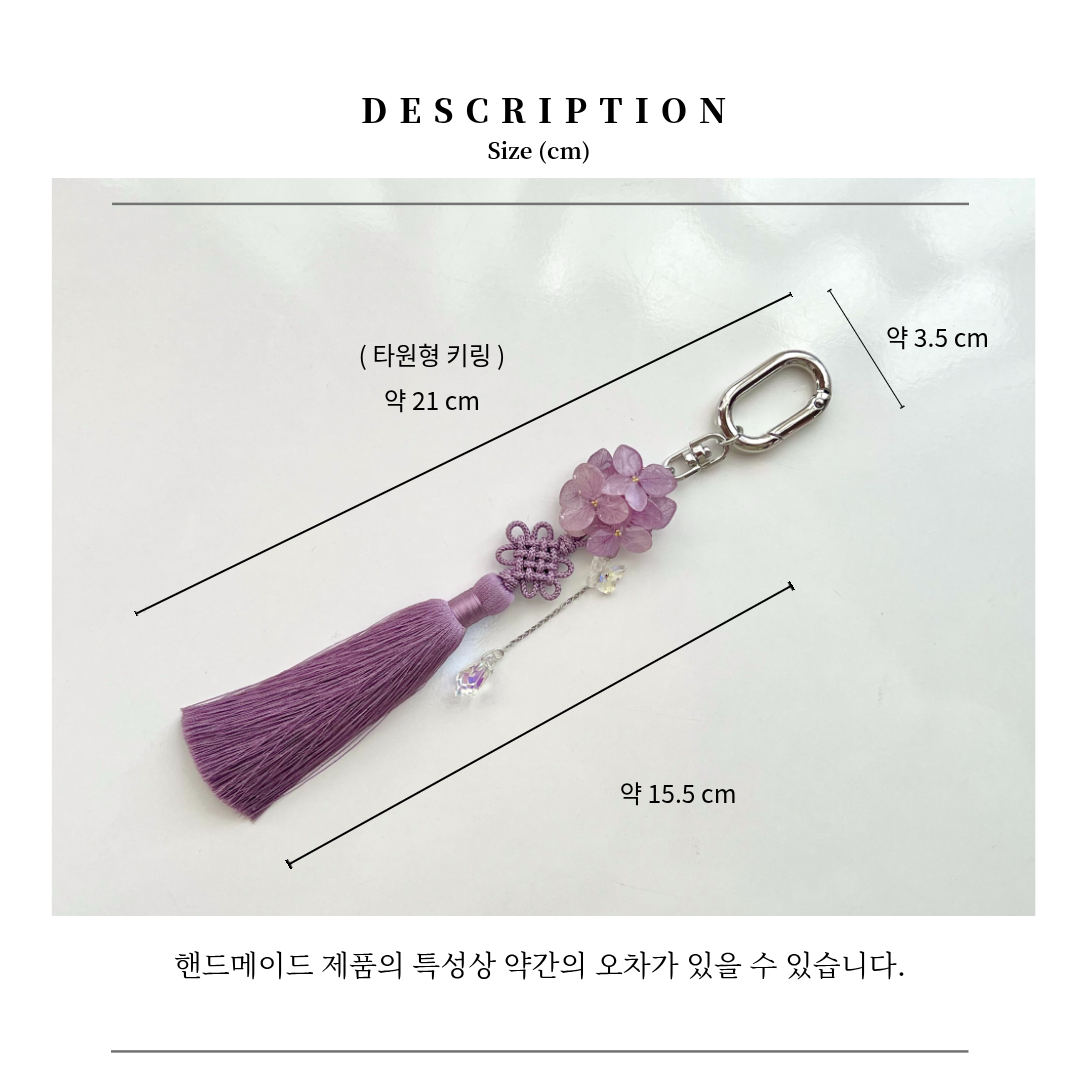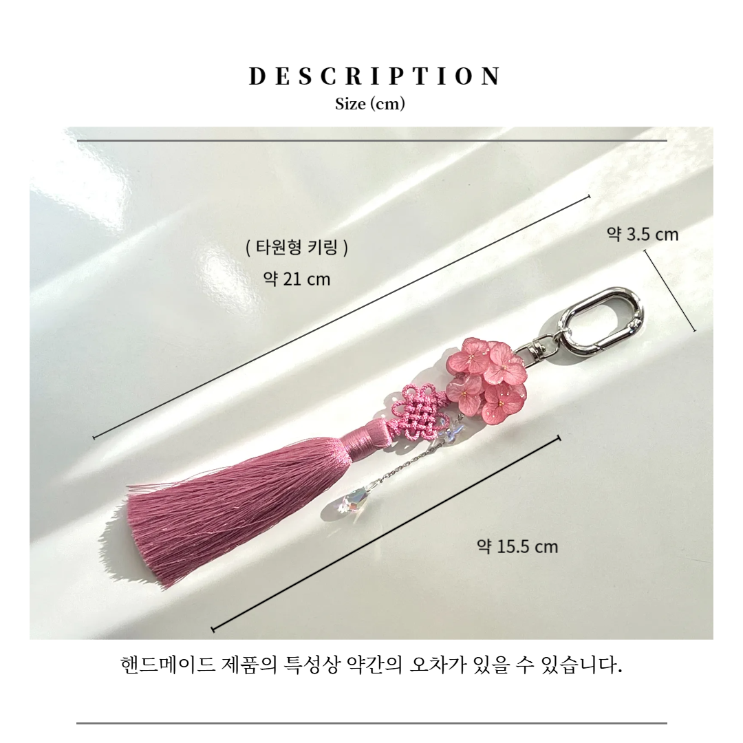 수국 노리개 키링 카시스핑크 타원형 착용