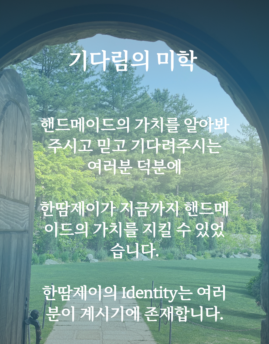 아이 셋를 키우는 맞벌이 부부가 자연의 아름다움을 담은 핸드메이드 작품을 선보입니다. 하나하나 모양과 색깔이 다름이 한땀제이의 특징입니다.