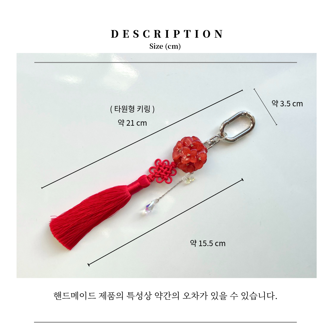 수국 노리개 키링 레드 타원형 착용