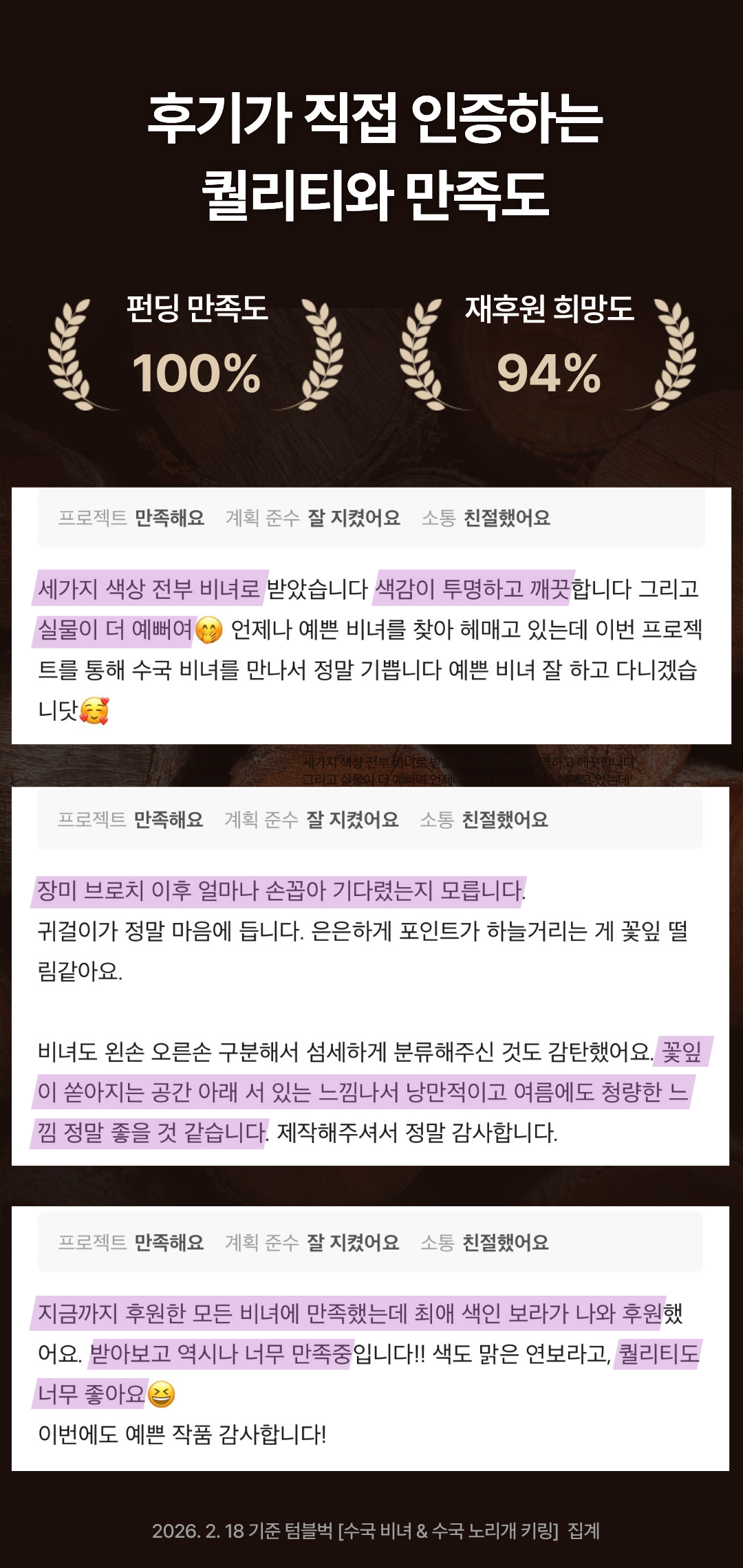 타 플랫폼에서 여러번 펀딩을 진행하면서 자연적이고 한국의 전통적인 아름다움을 전할 수 있는 작품을 많은 분들이 좋아하신다는 것을 느꼈습니다.
